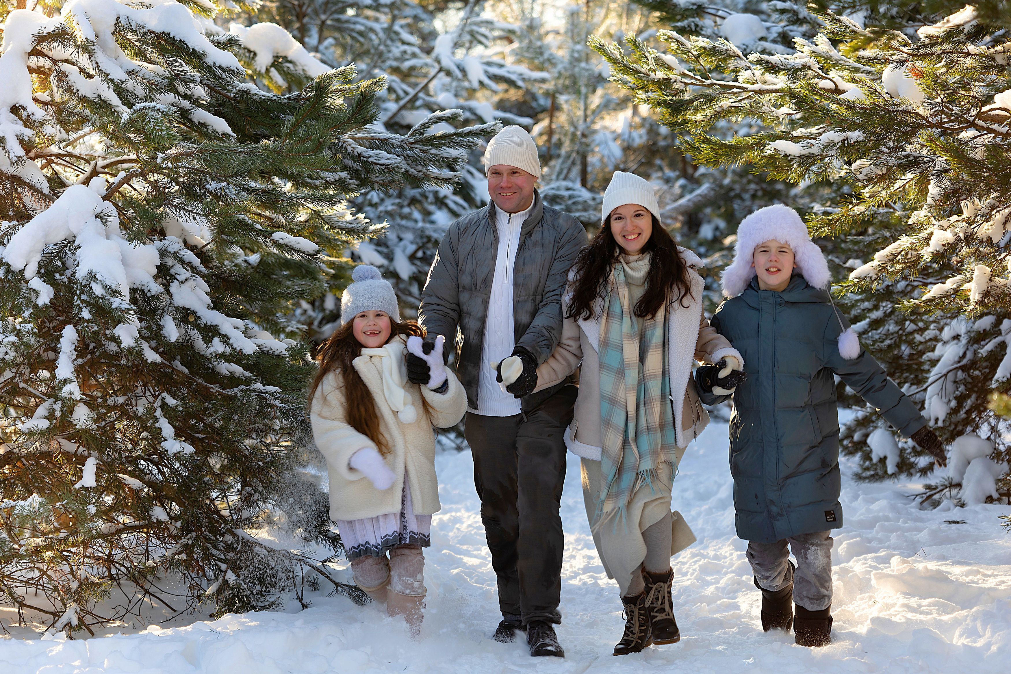 Семья, папа, мама, брат, сестра, зима, снег, мороз, лес, Герцен Наталья
