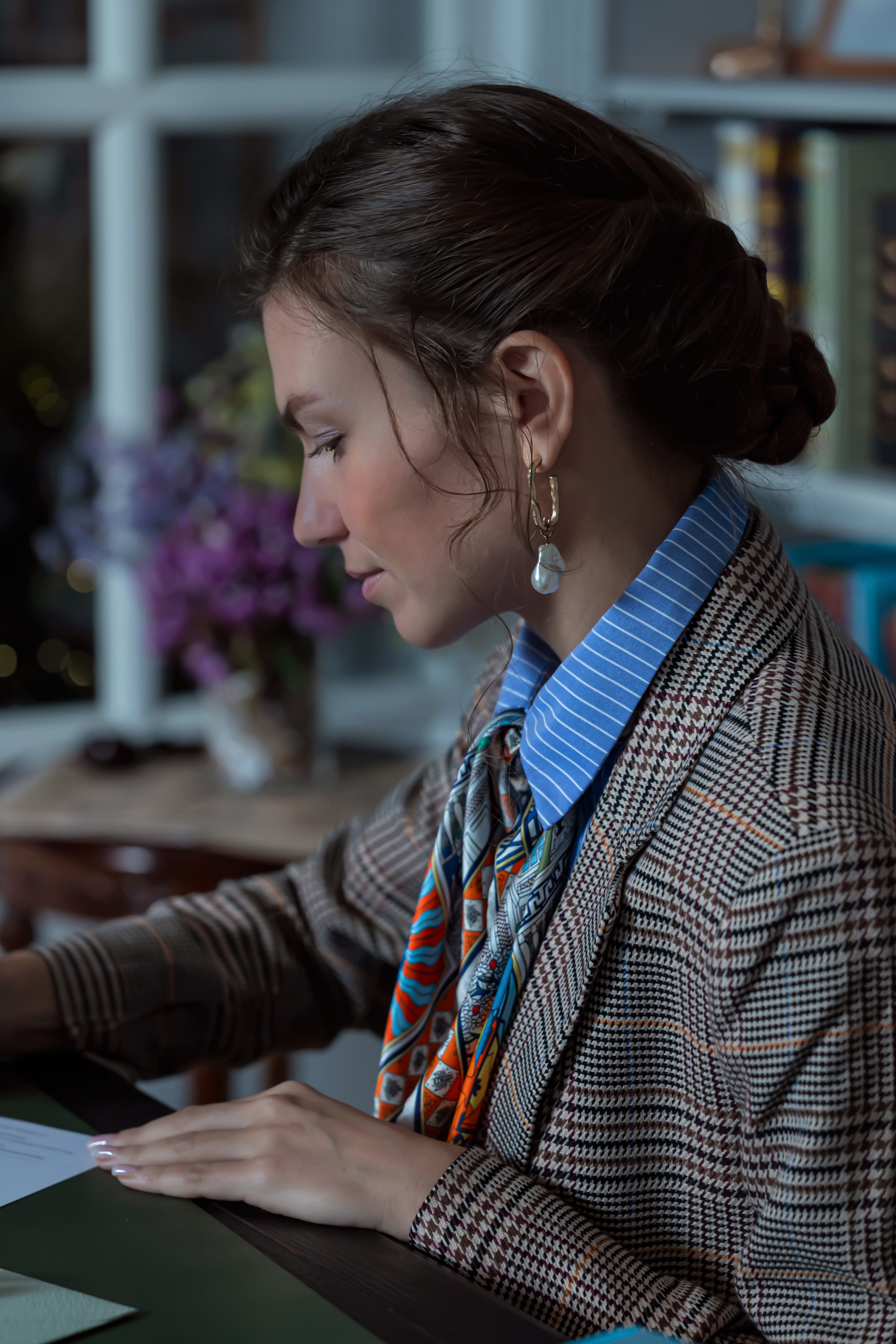 Девушка, деловой костюм, ручка, бумага, конверты, кабинет, Герцен Наталья