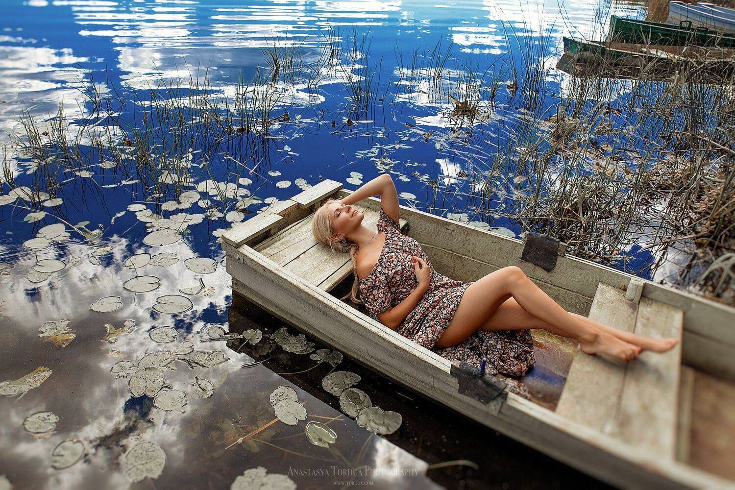 лето деревня солнце лодка облака озеро корова сарафан коса
