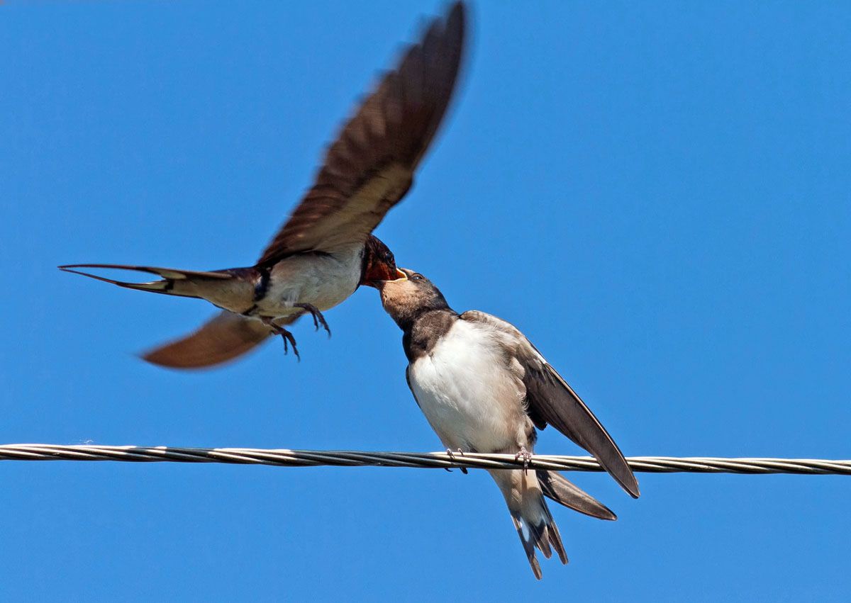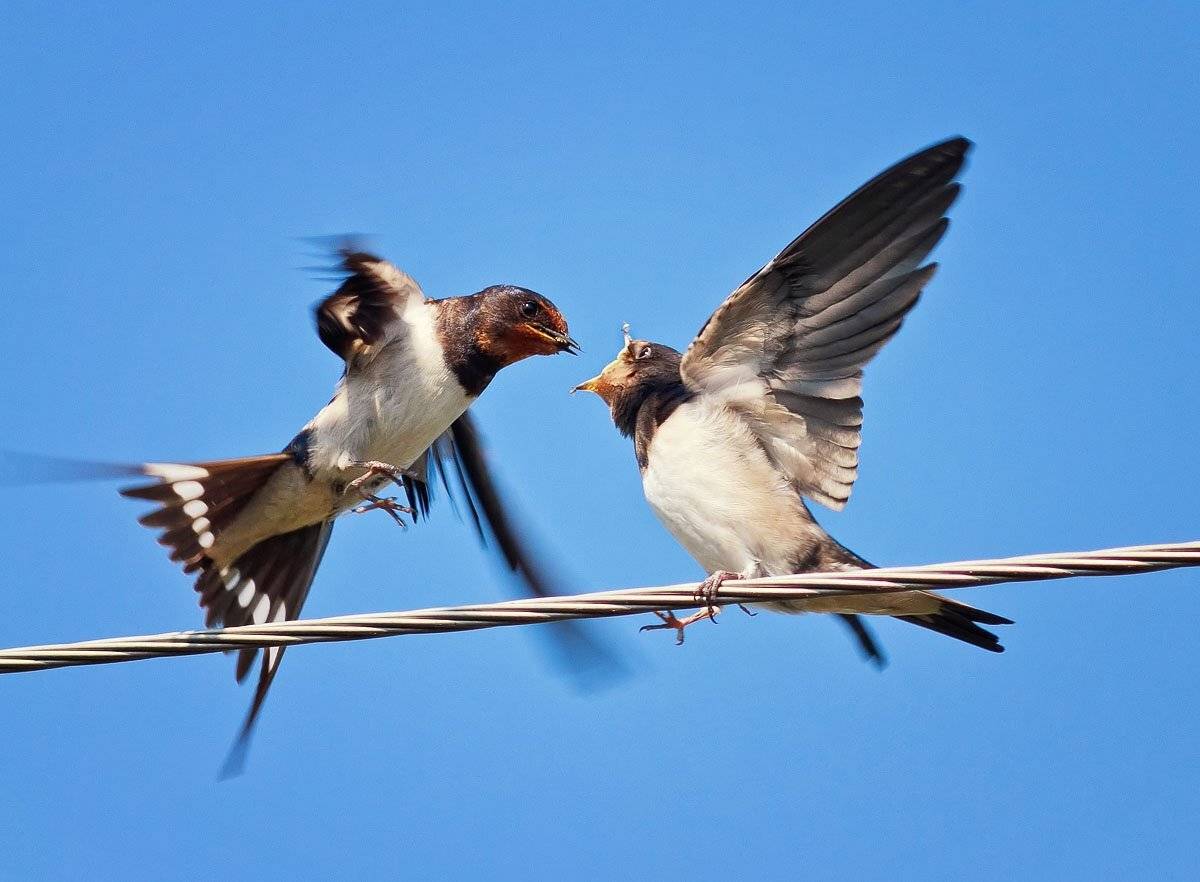 Вроде уже сами летают, а все родители кормят. Избалуют :)
