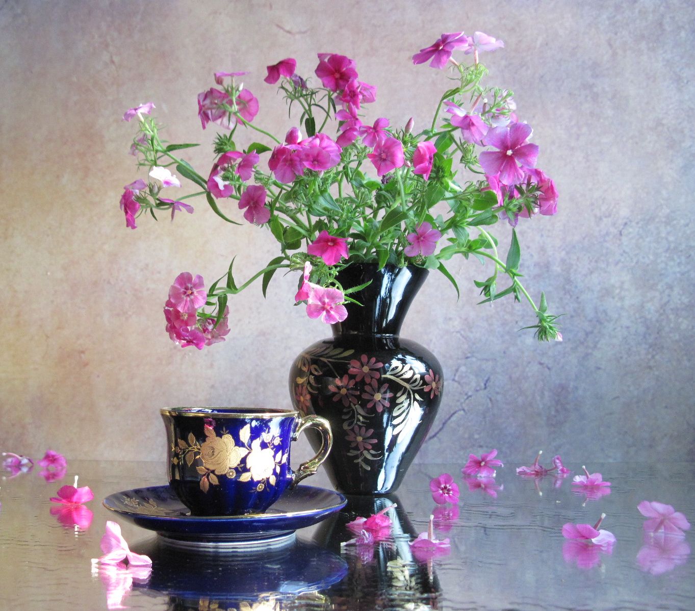 цветы, букет, флоксы, ваза, чашка, Наталия Тихомирова