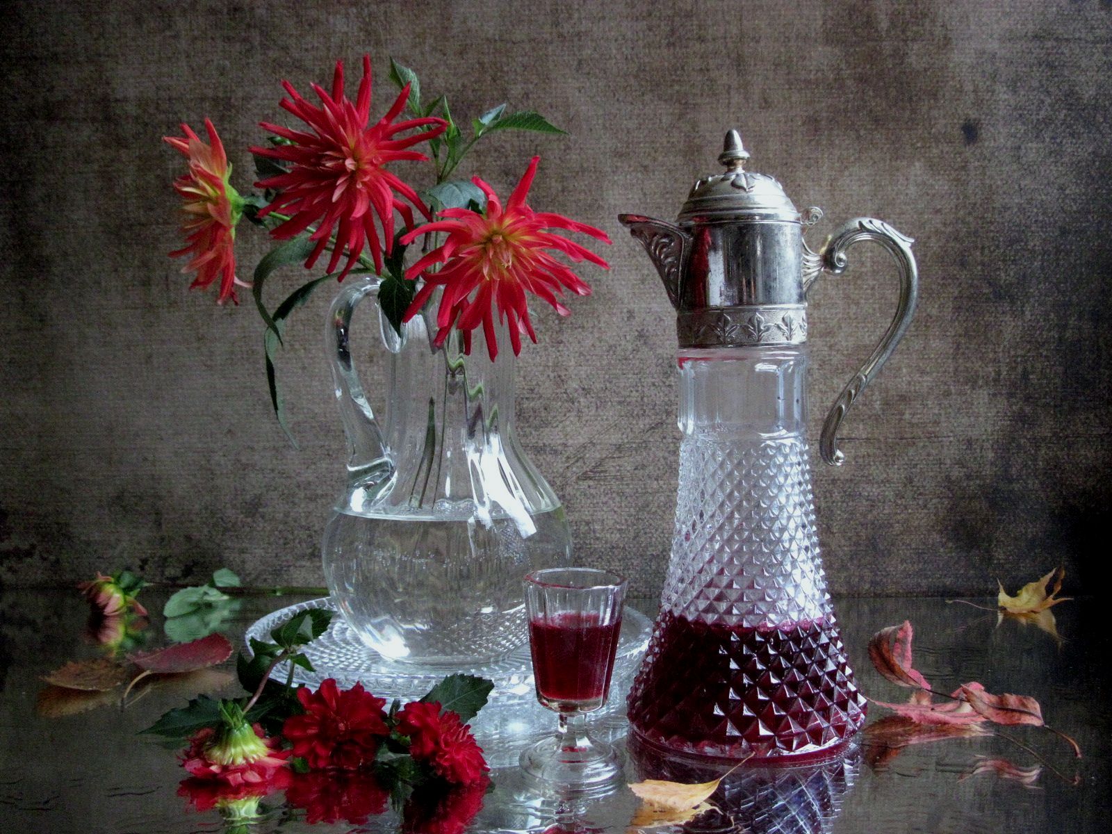 цветы, букет, георгины, кувшин, декантер, рюмка, винтаж, Наталия Тихомирова