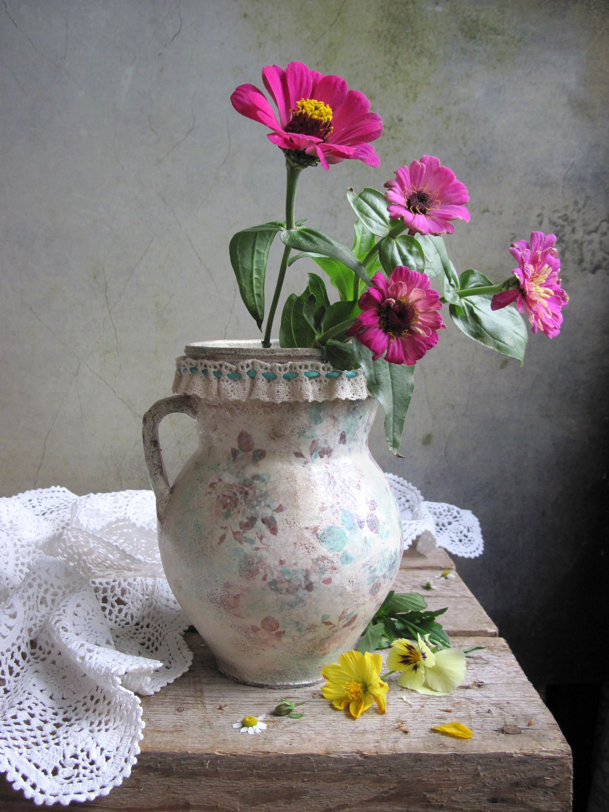 цветы, букет, циннии, кувшин, винтаж, декупаж, салфетка, Наталия Тихомирова