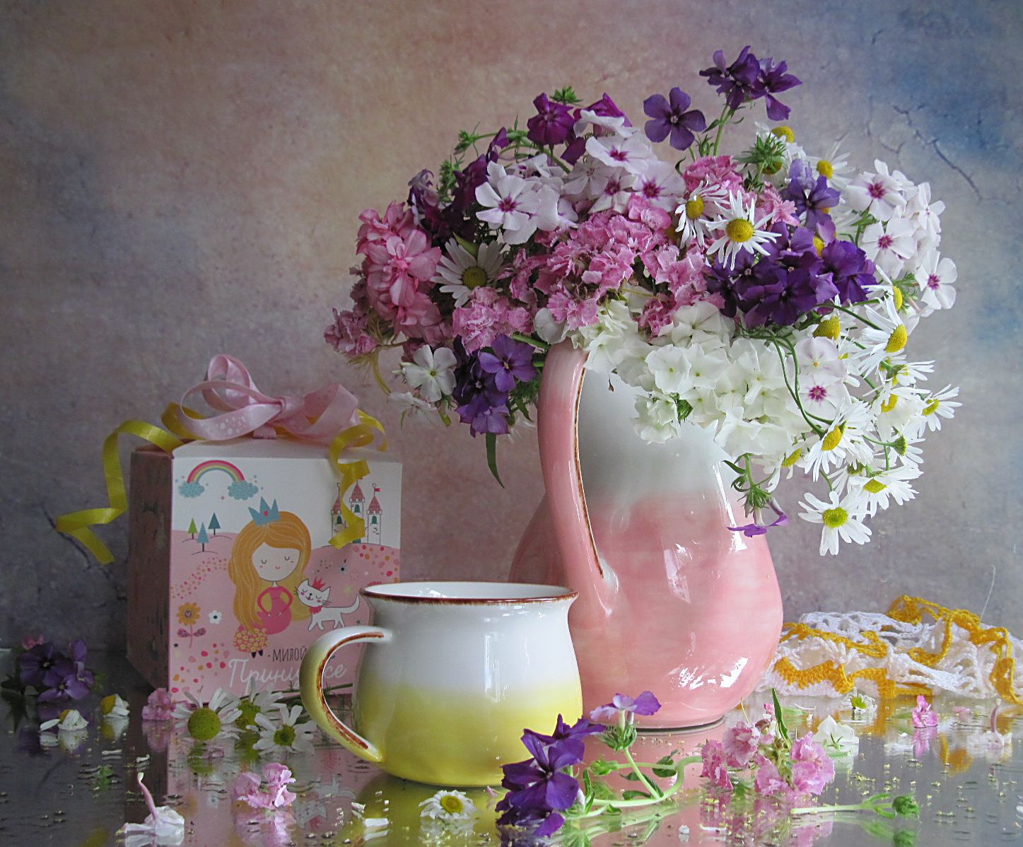 гвоздика, герань, ромашки, флоксы, фарфор, Наталия Тихомирова