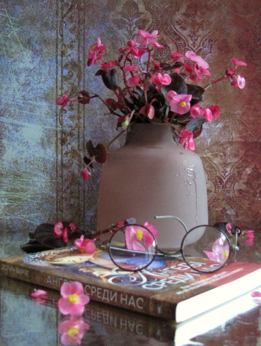 бегония, ваза, книга, очки, Наталия Тихомирова