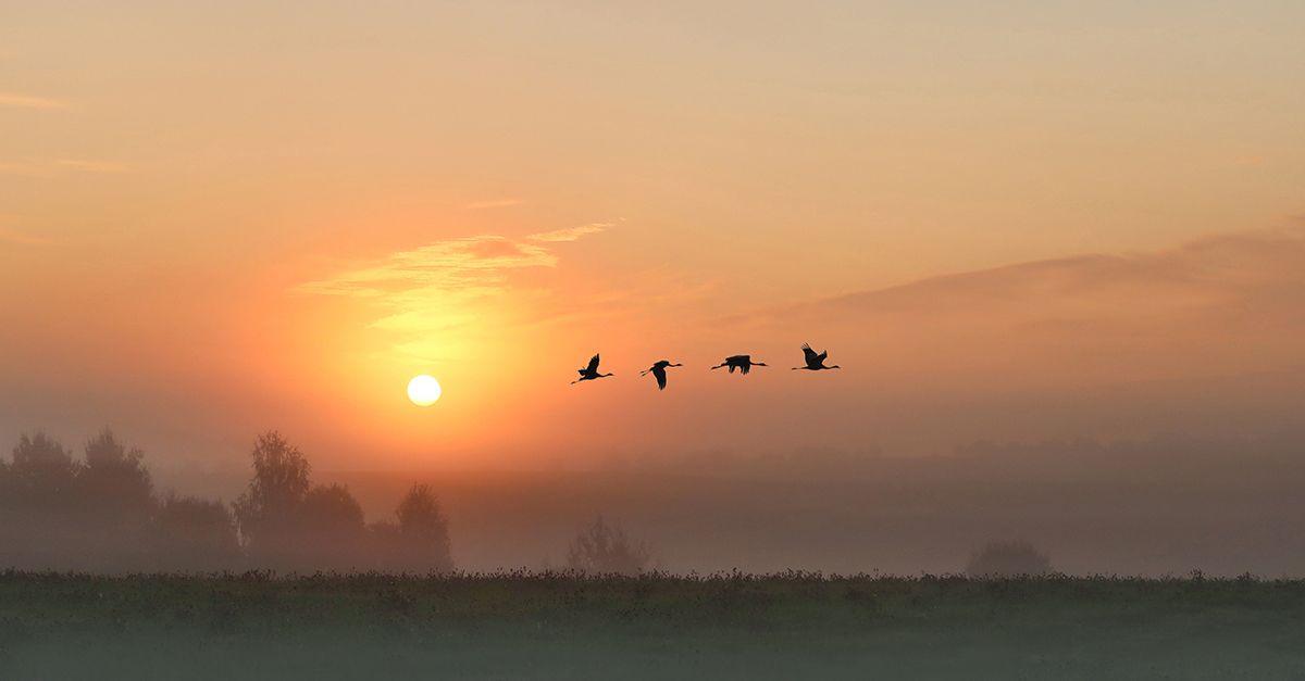 восход, солнце, журавли, Наталия Сытина