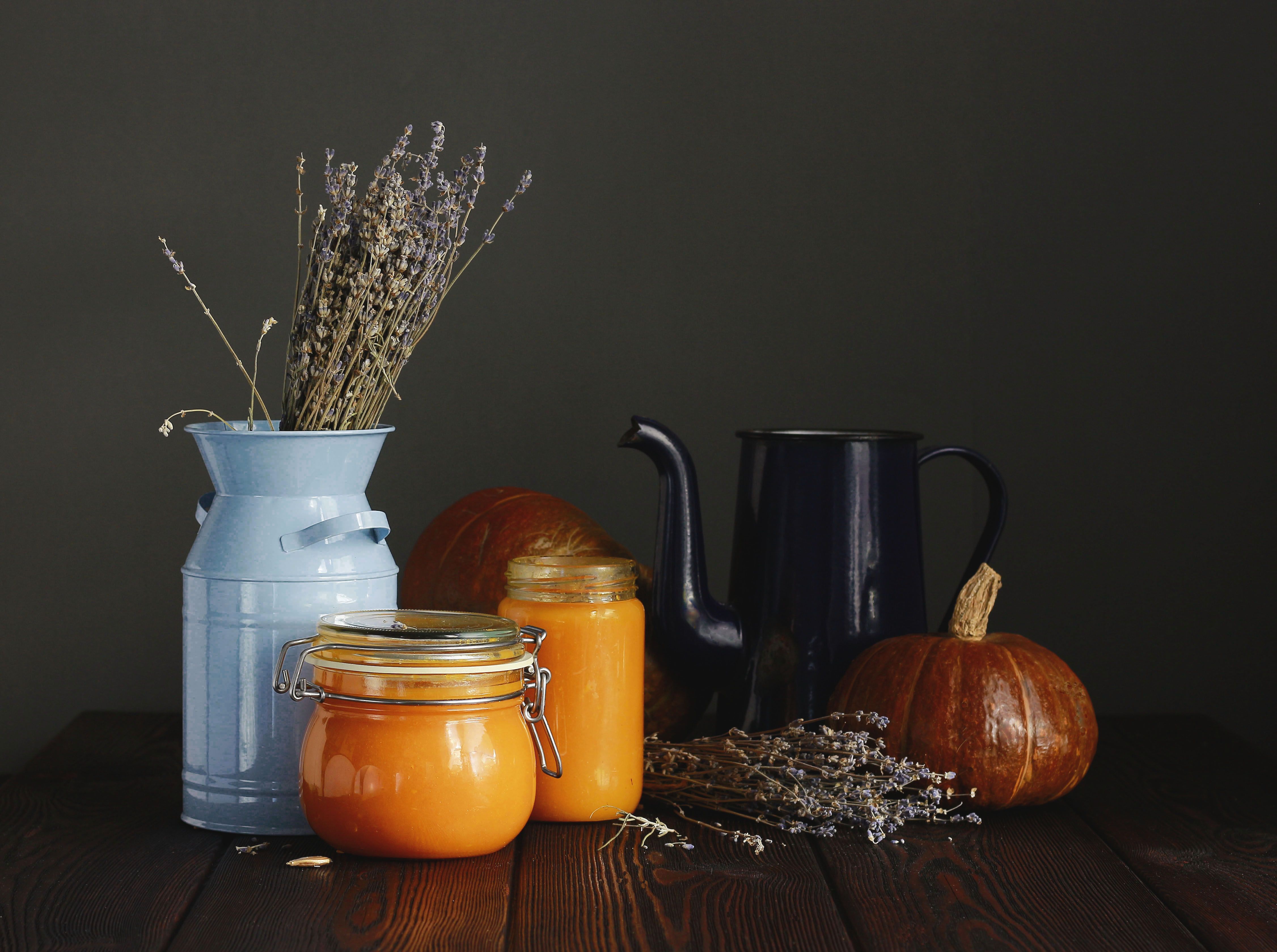 В баночках - пюре из тыквы.