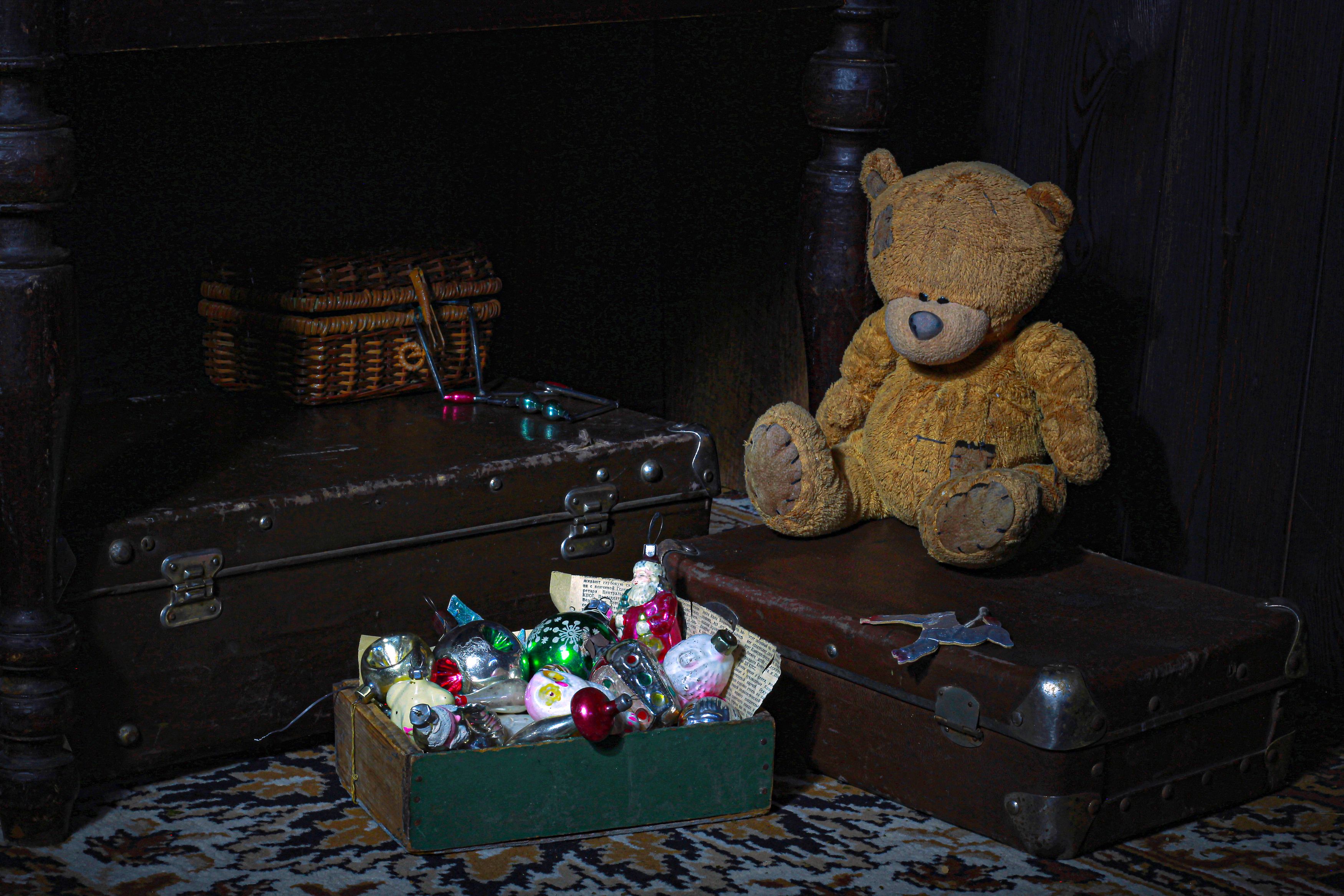 натюрморт, фотонатюрморт, зима, новый год, игрушки, мишка, чемодан, наталья казанцева, Наталья Казанцева