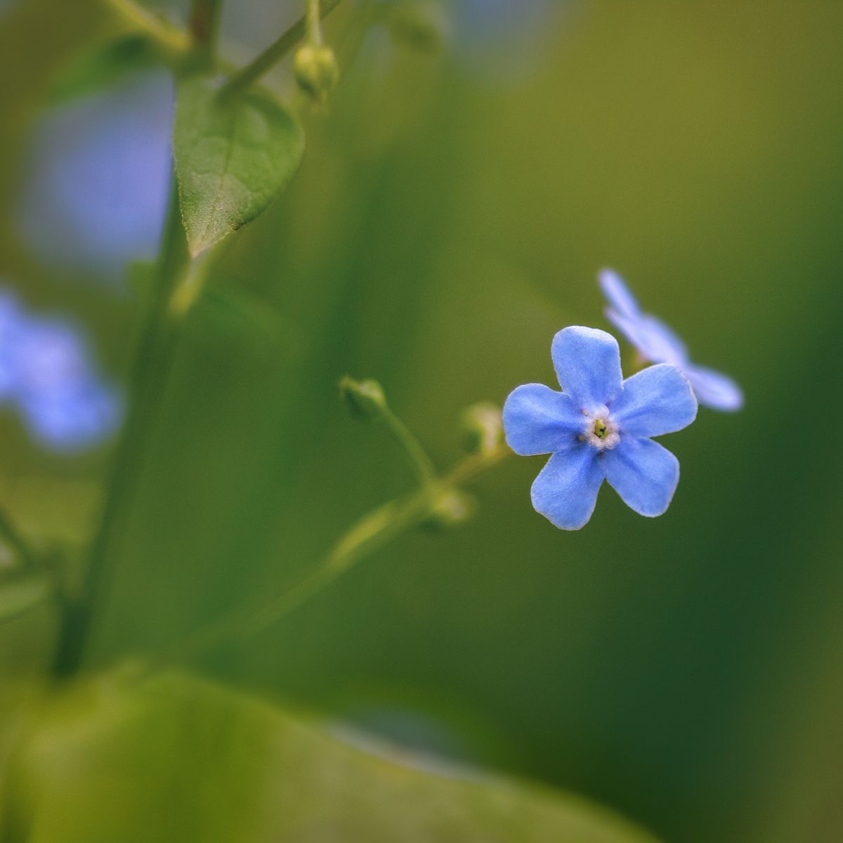 По-моему, голубой - самый редкий цвет, в который бывают окрашены лепестки цветов. Наверное, поэтому незабудки всегда как-то особо выделяются из "толпы" цветочных собратьев :)