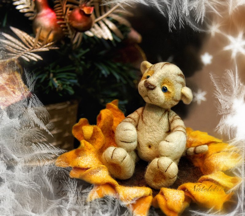 авторская игрушка, новый год, тигрёнок на подсолнухе, Nateletro