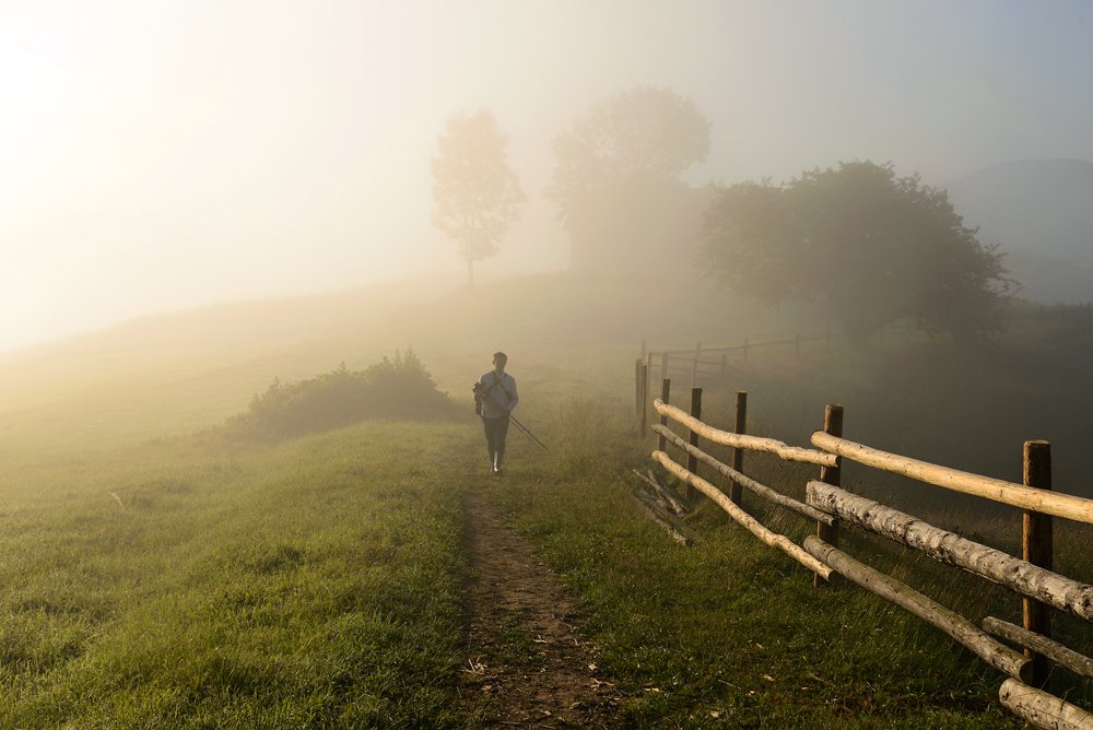 Похожий силуэт в тумане. В этом году ездил со мной в Альпы.