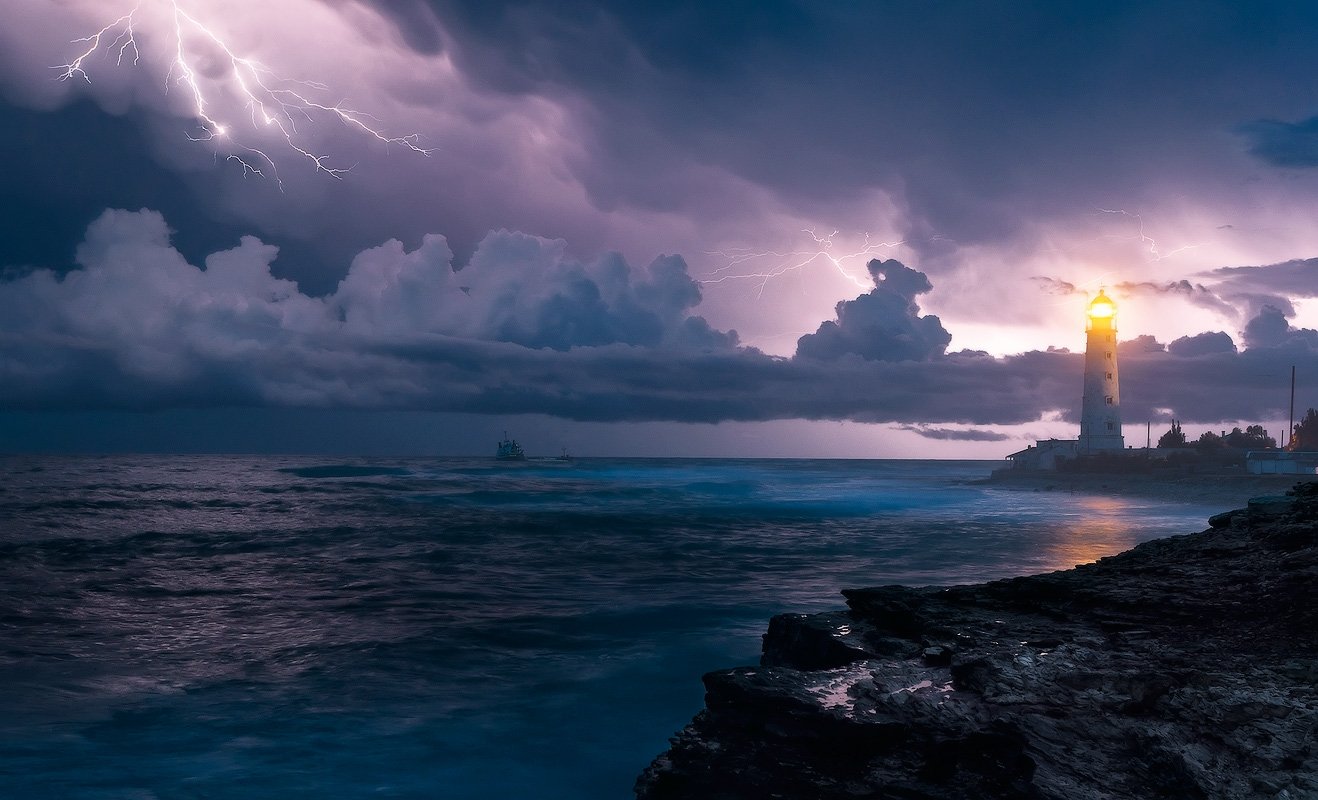 Ну и мож еще лучь от маяка на море направить, для пущей картинности.