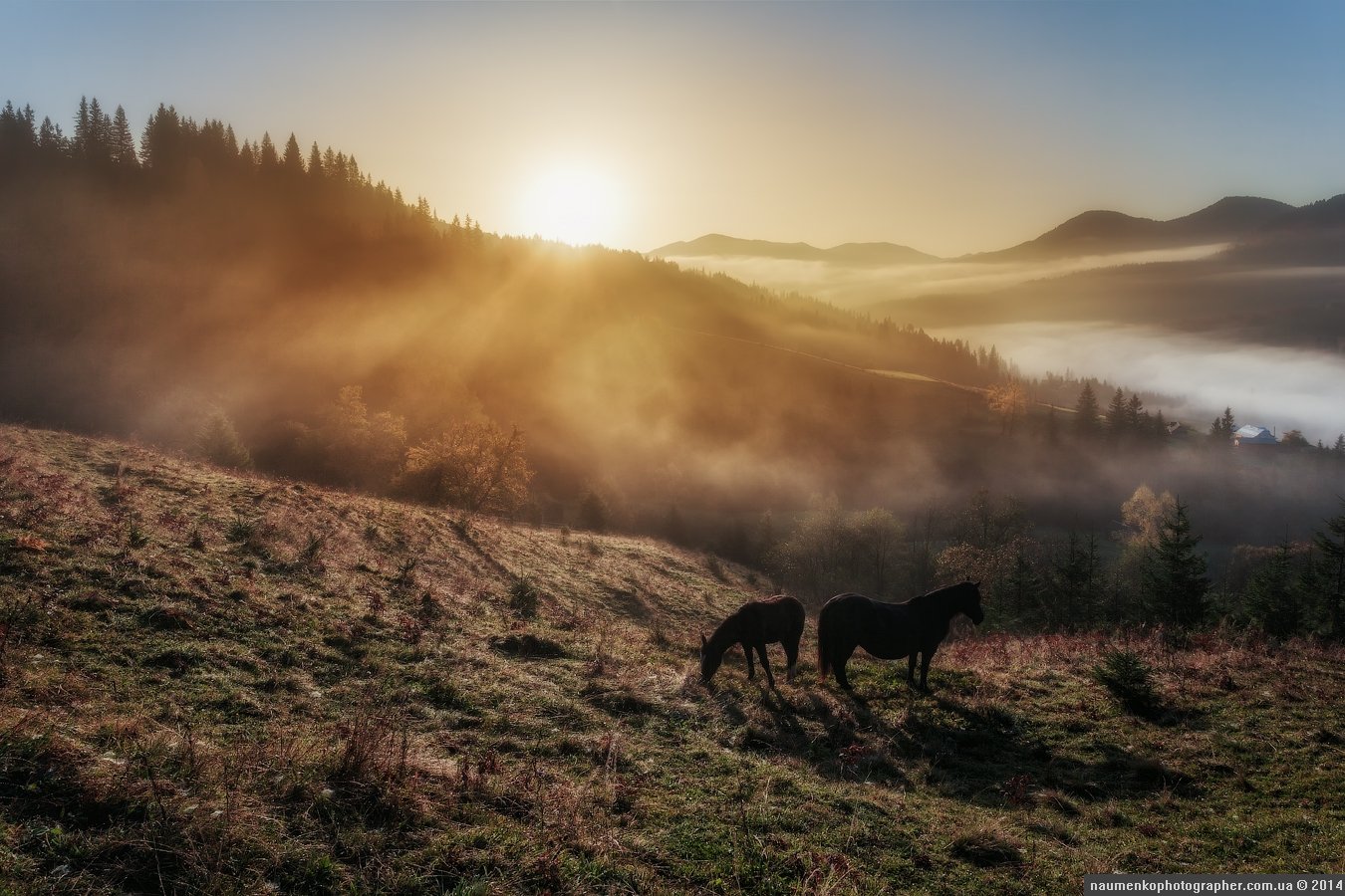 горы,	зеленый,	карпаты,	луг, природа,	рассвет,	роса, склон,	солнце,	трава,	туман, дземброня, Александр Науменко