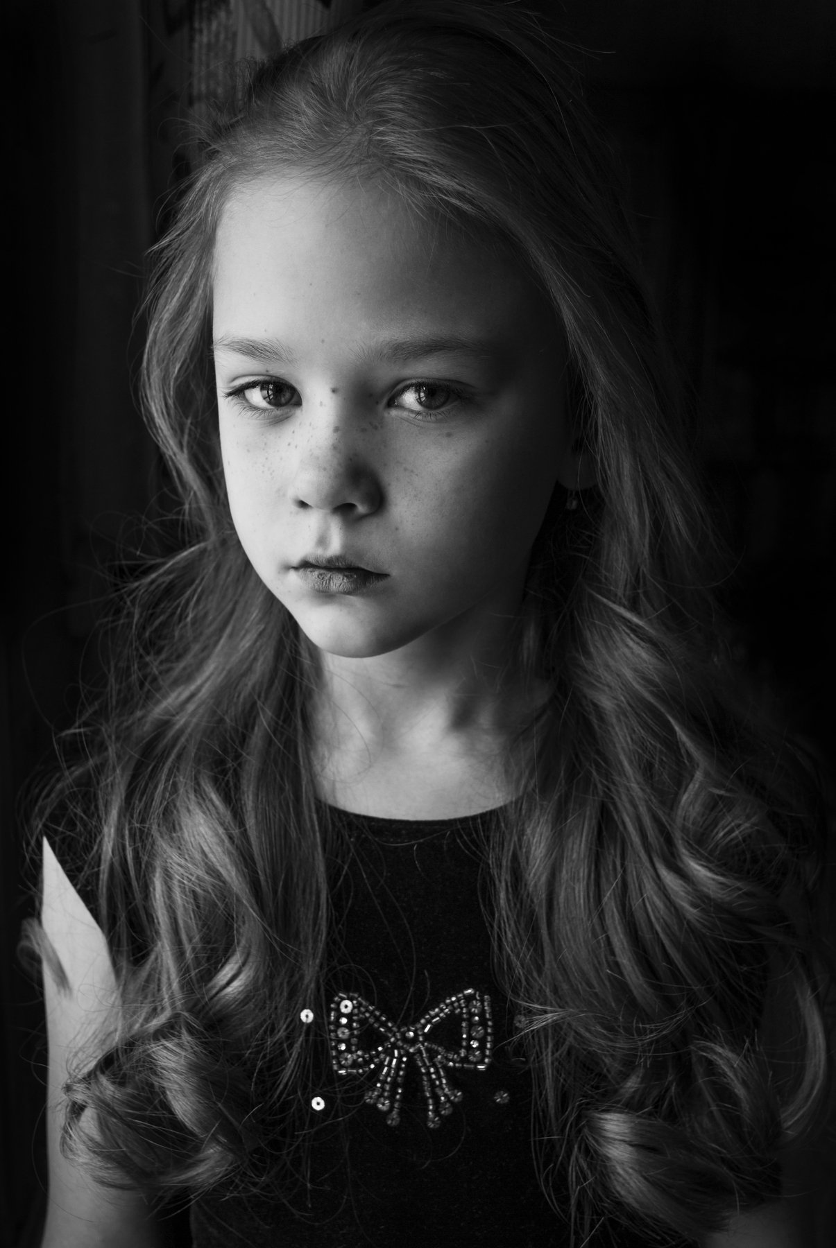 Арина, Бантик, Девочка, Дома, Екатеринбург, Локоны, Портрет девочки, Ч/б, Чёрное платье, Наумова Диана