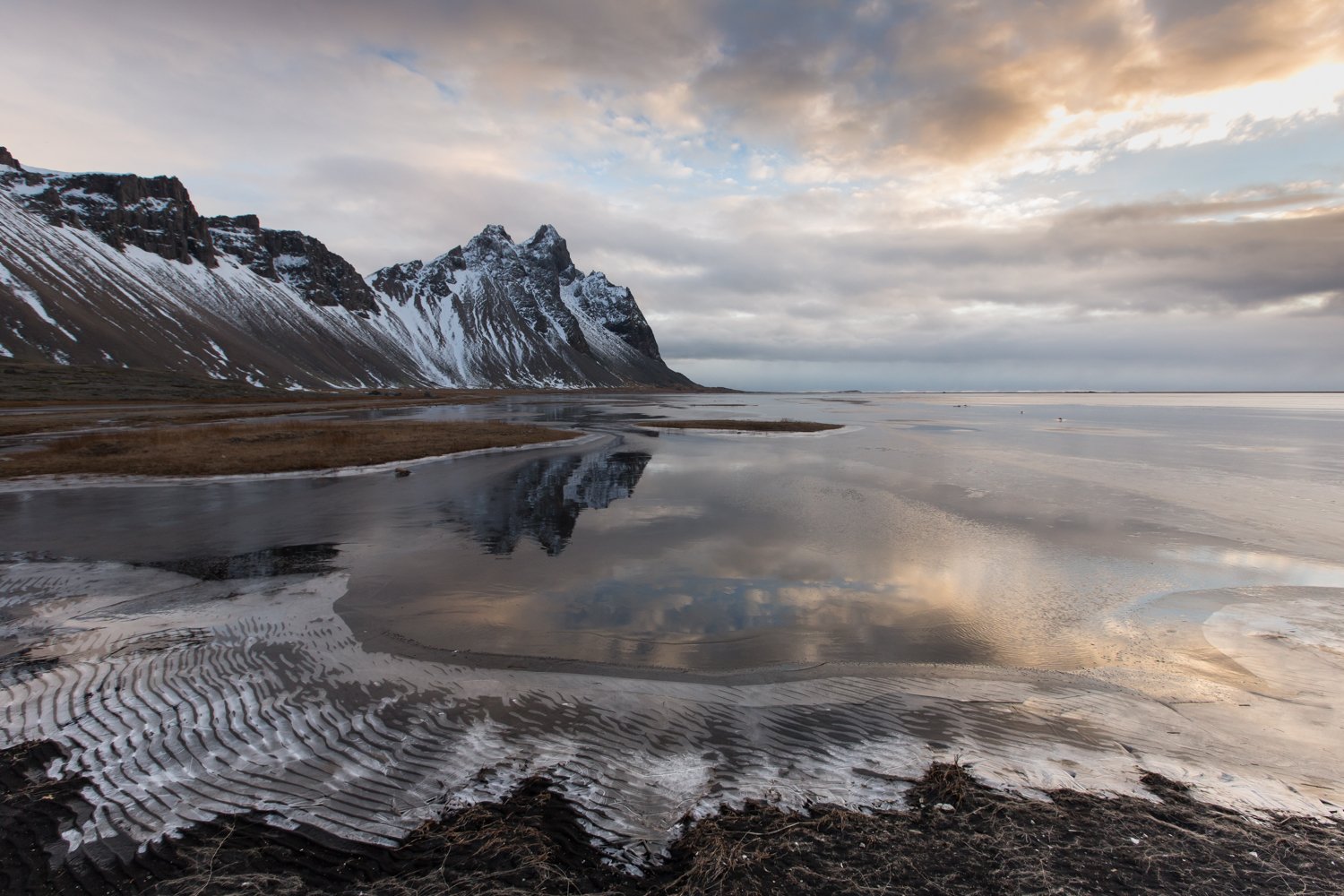 stokksnes , исландия, лёд, утро, вода, отражение ,гора , снег, зыбь,рябь, атлантический океан, Ирина Назарова