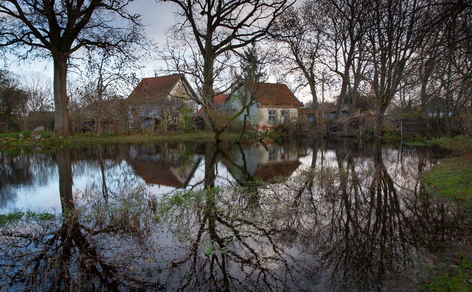 отражение ,домики ,осень ,куршская коса,зеркало, голые деревья, Ирина Назарова