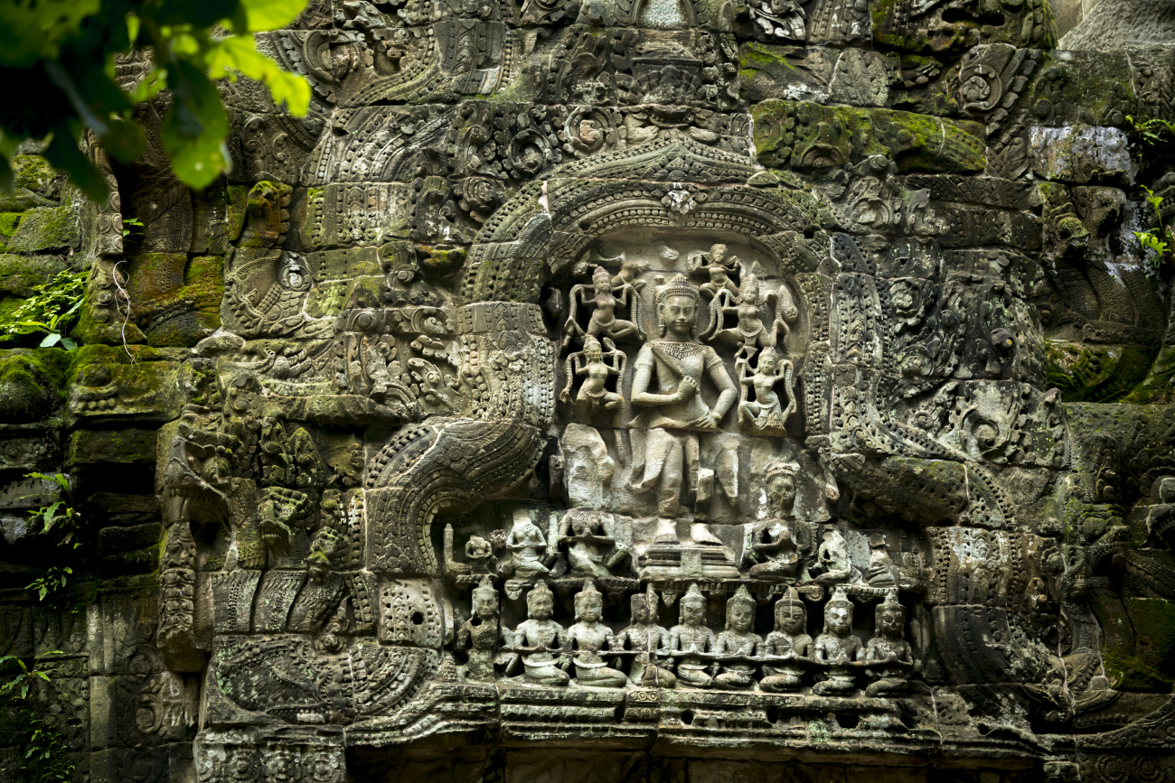 Одно из самых необычных и загадочных культовых сооружений в Камбодже, построенное в Ангкорский период (12 век). Основателем храма считается кхмерский чакравартин (император) Джаяварман VII. В исторических источниках этот правитель описан как очень религиозный и сострадательный человек, много сделавший для своего народа. В частности, он строил больницы для простых людей. Кроме того, Джаяварман VII был последователем буддизма махаяна и всесторонне способствовал распространению этой религии в древнем Индокитае. Храм Та Прум (Глаз Брахмы) император возвел в честь своей матери, которую считал богиней “Cовершенной Мудрости”. В исторических источниках говорится, что на территории святилище проживало более 12-ти тысяч человек. В нём служили 18 верховных браминов, 2740 священников, 2232 прислужника и 615 танцовщиц. В 12-м веке форма правления в империи кхмеров была теократической, поэтому храму подчинялись более 3—х тысяч окрестных деревень с населением почти 80 тысяч человек, а также 102 больницы. В какой-то далекий истерический момент храм покинули все жрецы, и он умышленно был оставлен на милость джунглям. Постепенно дождевой тропический лес поглощал Та Прум. Его современное состояние поражает воображение. Древние строения захватили гигантские фикусы-душители, которые относятся к так называемым “железным деревьям”. Ученые установили, что их возраст варьируется от 600 до 700 лет. Именно крайне необычный вид храма способствовал тому, что здесь уже в наши времена сняли эпизод фантастического фильма “Лара Крофт: Расхитительница гробниц”. После этого камбоджийцы стали называть это культовое сооружение “Храм Лары Крофт”. И еще одна загадка. На одном из барельефов храма есть совсем небольшое, величиной с ладонь изображение динозавра. Ученые до сих пор ломают голову над тем, что это такое.