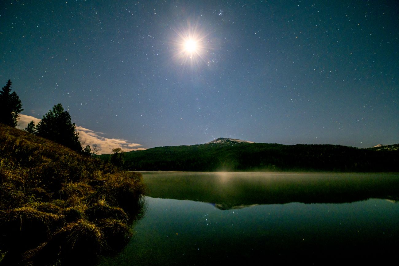 Казахстанся часть Алтая. Озеро Язевое и гора Белуха, высочайшая вершина Алтайской горной системы (4506 метров над уровнем моря). Снято в сентябре 2022-го года.