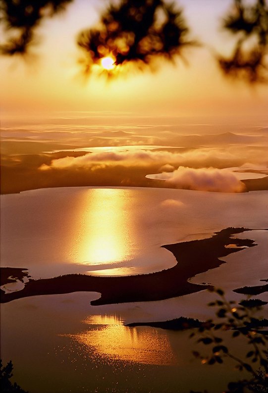 Вид с высшей точки курорта Боровое – горы Синюхи (947 м) на закате солнца… Озёра Большое Чебачье, Малое Чебачье, Майбалык и ещё пара-тройка безымянных на горизонте…