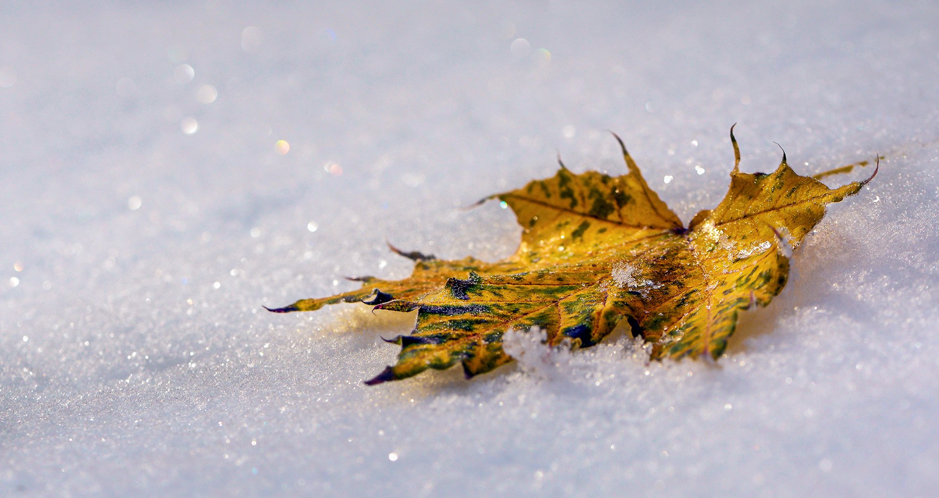 природа, макро, осень, снег, белый, опавший лист, желтый, боке, Неля Рачкова