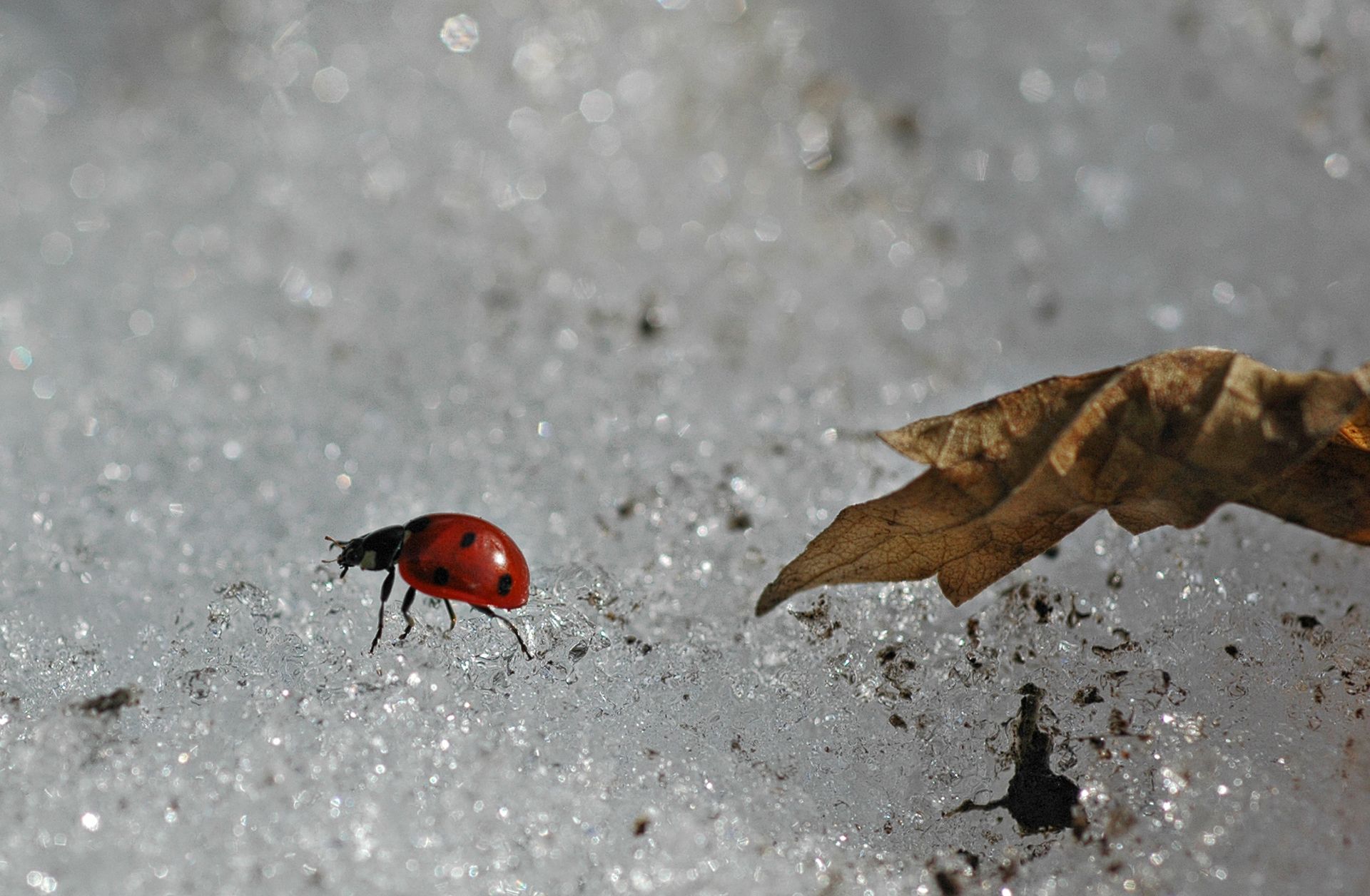1 декабря 2013 г. После снегопада и непродолжительного мороза наступило почти летнее тепло. Проснулись божьи коровки и отправились по своим делам. Одна из них любезно согласилась мне попозировать.
