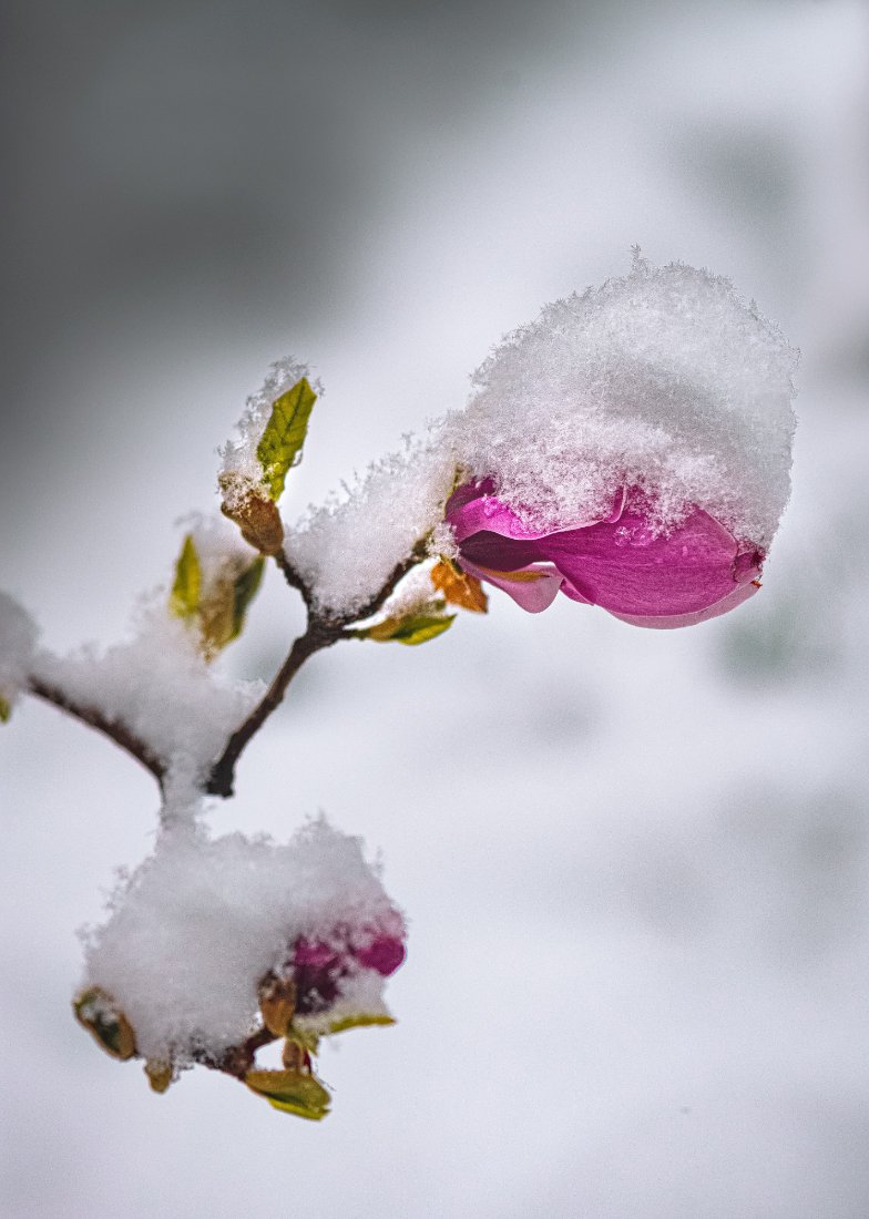 природа, макро, весна, цветы, магнолия, сюрпризы погоды, снег, Неля Рачкова
