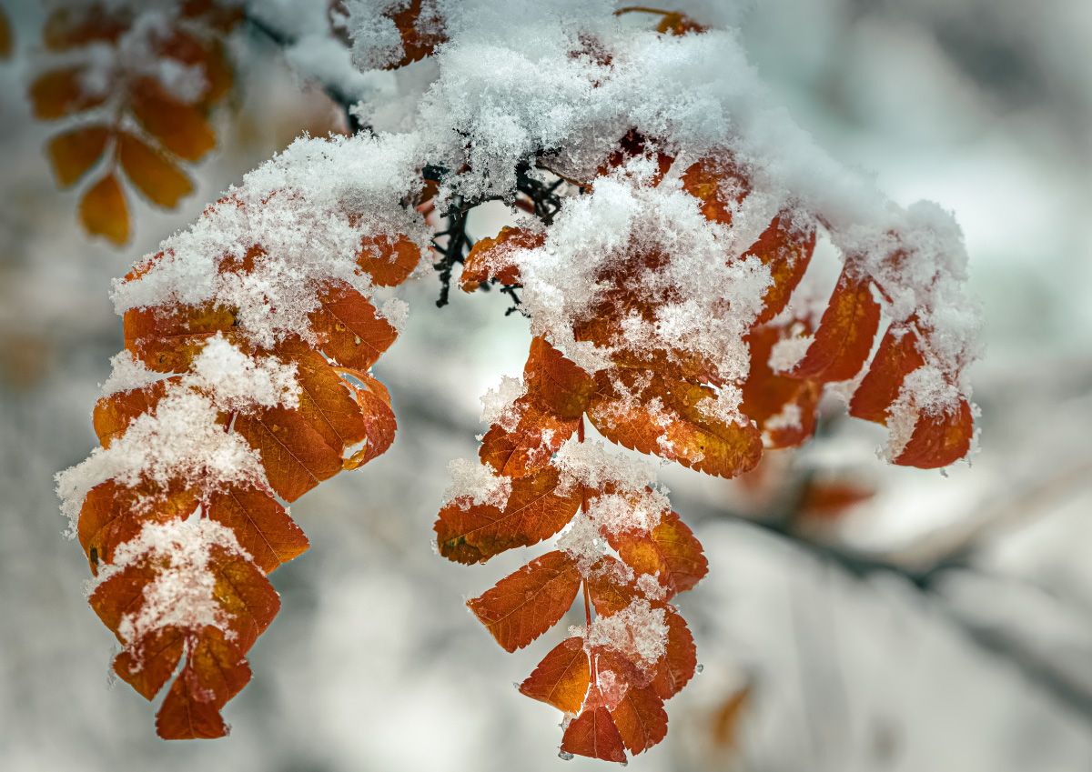 природа, макро, осень, рябина, снег, Неля Рачкова