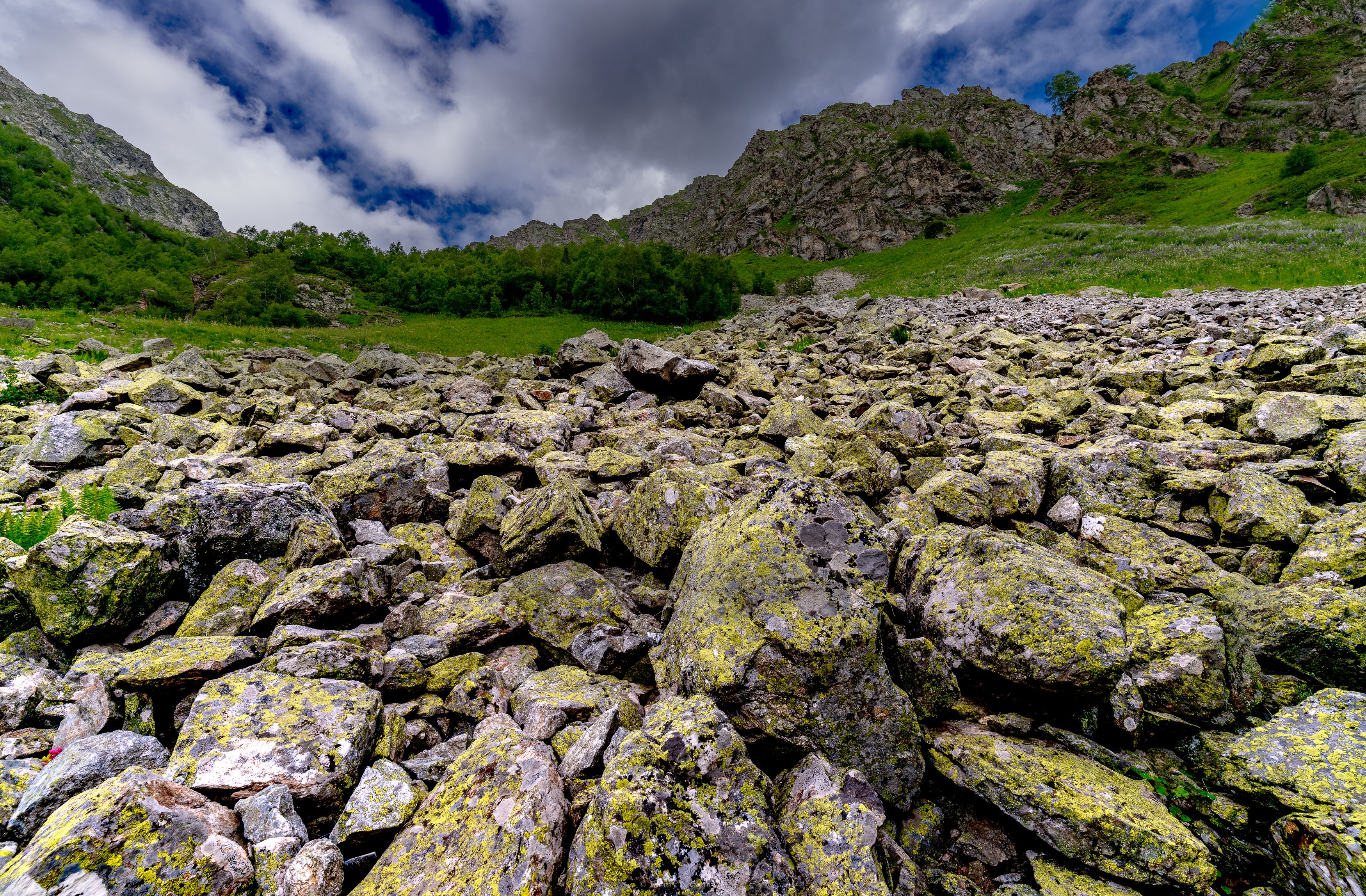 Это обломки скал, которые могут выстилать достаточно большие пространства. Собственно, из-за протяжённости, они носят ещё одно название: каменное море. Кроме того, они в некоторых местностях ещё и подвижные - перемещаются. В отличие от осыпи, камни имеют достаточно крупный размер. Помимо скальной породы, курумы могут образоваться и гранита, базальта и некоторых других пород.
