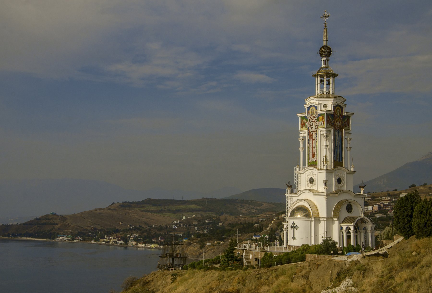 Полностью и правильно это место называется «Мемориальный комплекс «Памяти погибших на водах», и в него входит сам Музей катастроф на воде, Храм-маяк Святого Николая Мирликийского (также называют просто Храм Николая Чудотворца), площадка вокруг храма и смотровая площадка. На наш взгляд, это место просто обязательно к посещению, если вы отдыхаете в одном из сел в этих краях (с. Малореченское, Солнечногорское, Рыбачье), и определенно стоит времени