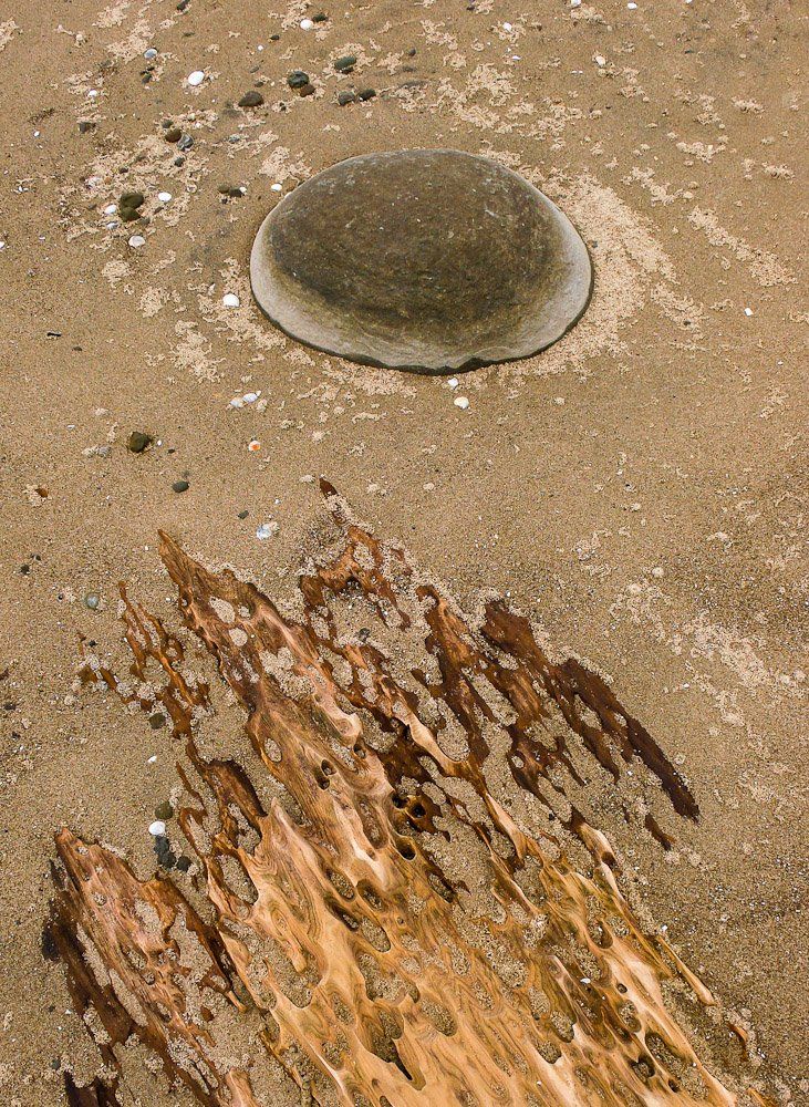 Смотрела передачу про Австралию. Там ученые раскалывали подобные круглые камушки,небольшие,с ладонь, а внутри оказывались окаменевшие животные или растения. Попробуйте в следующий раз, вдруг и Вам повезет :)