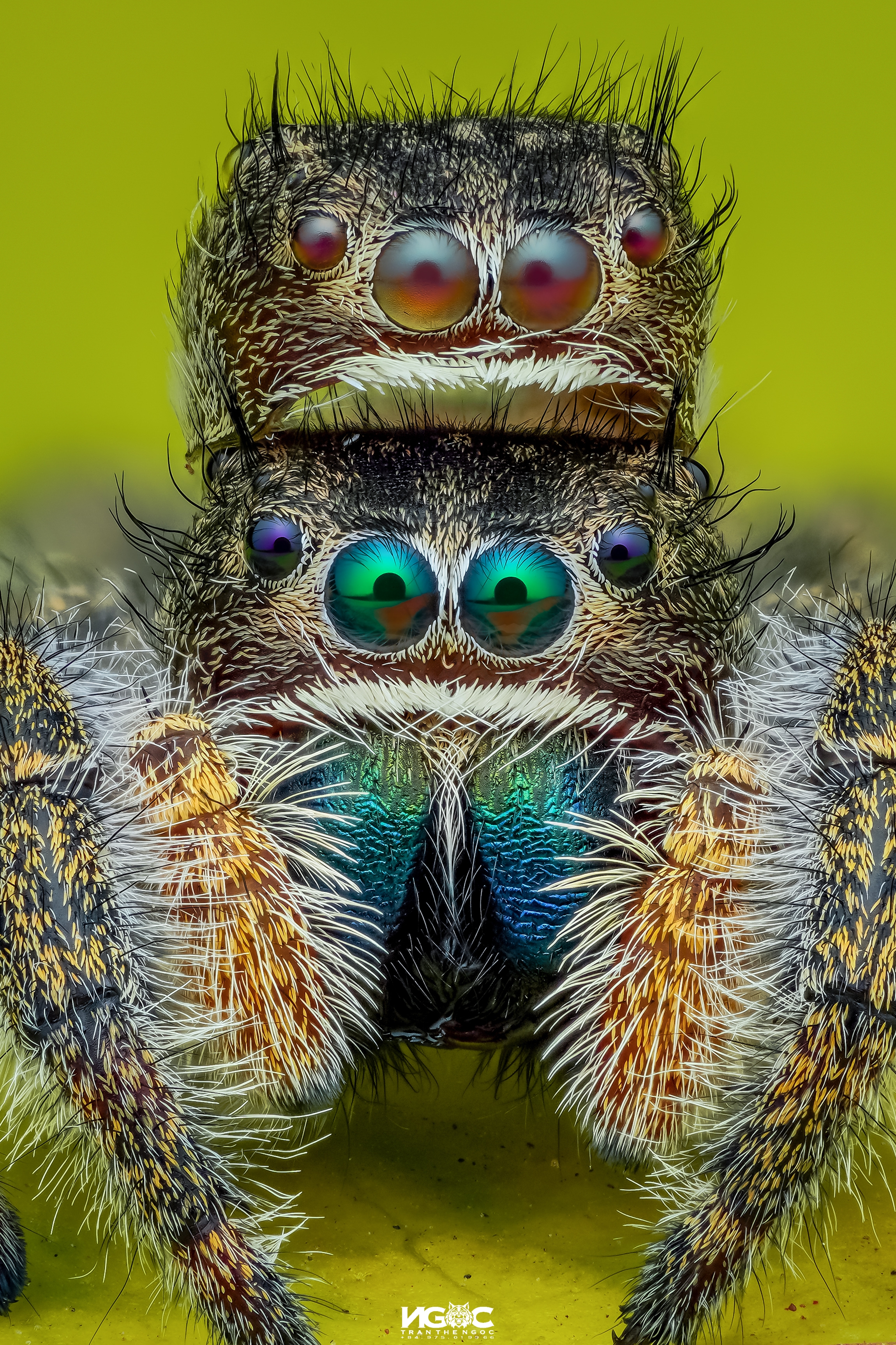 Sharp focus on the spider’s eyes, vivid colors, and fine detail in the fur — this macro shot really shows the creature’s texture and intensity. Well-composed, clean background, great lighting.