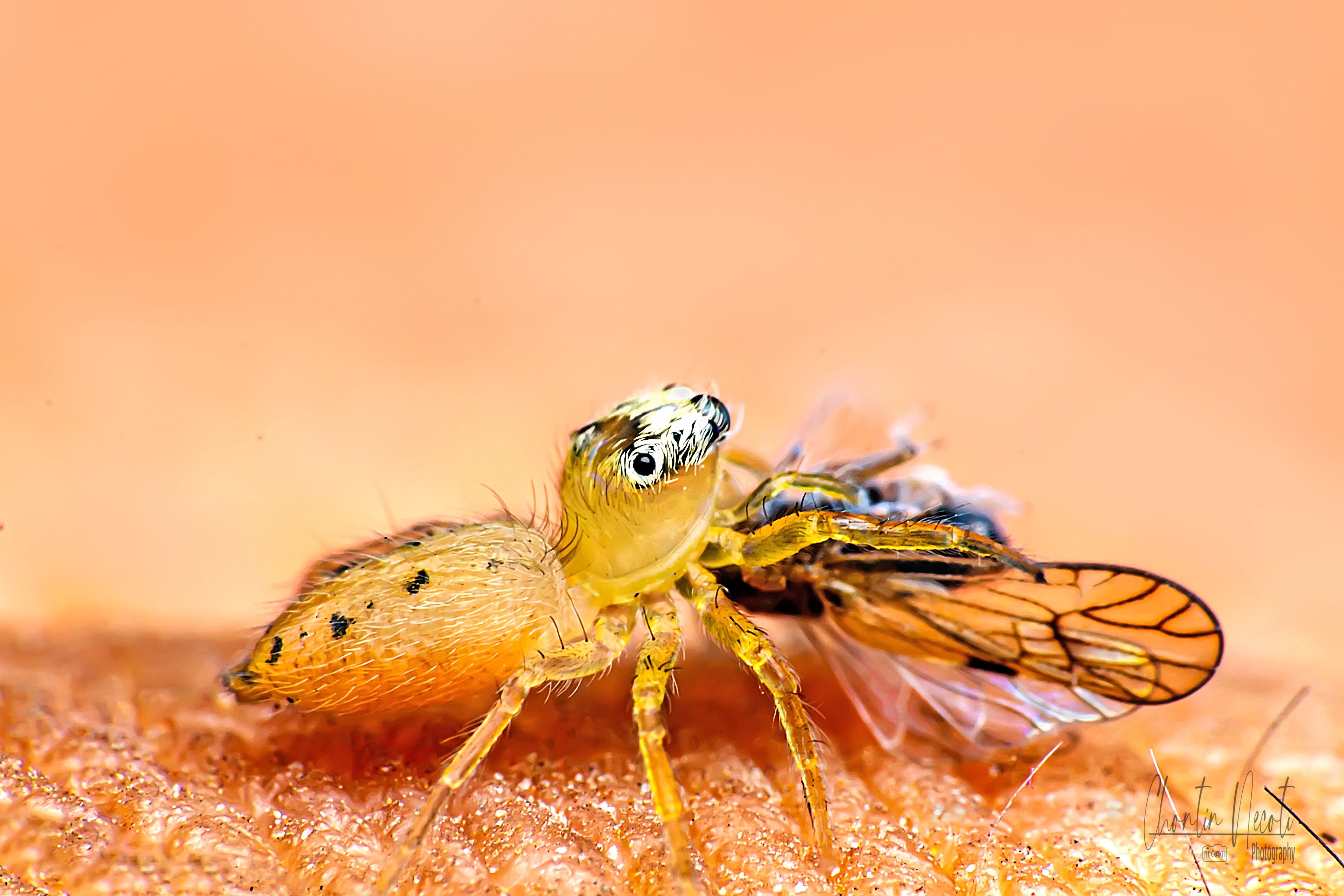 Jumping, spider, eating, animal, small, beauty, beautiful, insect, outdoor, natural, nature, macro, close up, prey, NeCoTi ChonTin