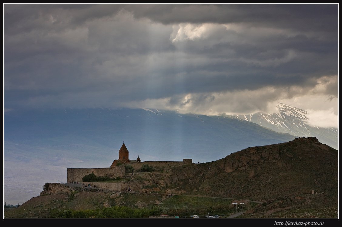 Хор Вирап — монастырь Армянской апостольской церкви, находящийся в Армении, близ границы с Турцией, у подножия горы Арарат. Арарат почти не виден (((. Через полчаса пошёл страшный ливень.