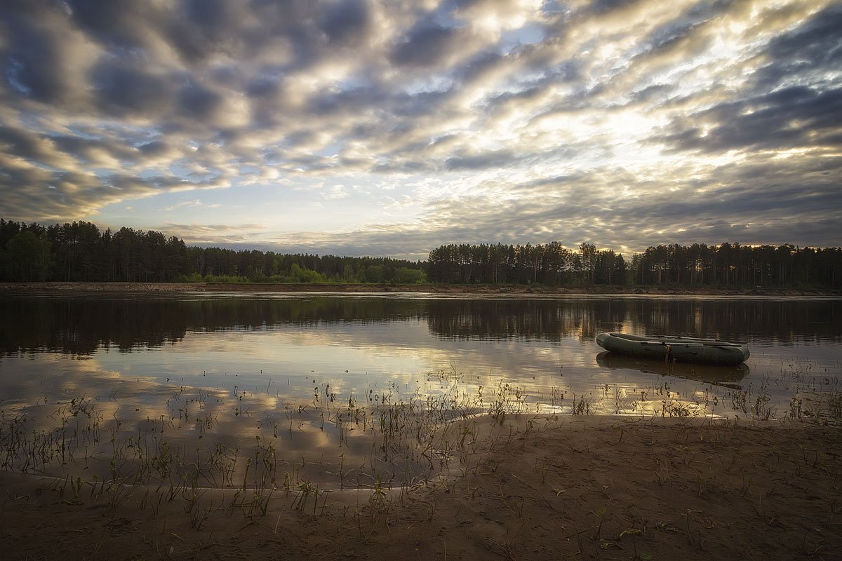 Мне понравилась работа! Композиция хорошо выстроена, небо необычное, как шахматы), и отражения красиво смотрятся, и передний план интересный. Вот лодку бы сюда не надувную..., это да.)