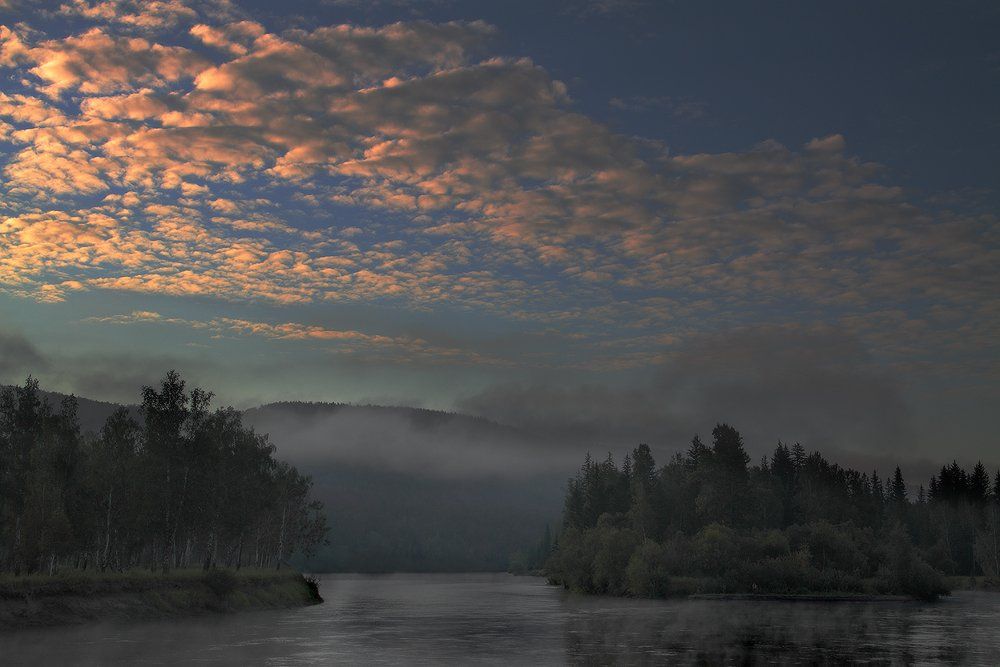 Небо, конечно, красивое, желание показать понятно. Но в предложенном варианте просыпающейся стороне отведено должное место, а то практически все внимание на небо, ландшафт взгляд проскакивает без задержек. Я - за. Только ухода от канона тут нет: вода, растительность и горы, небо - всему по 1/3:)