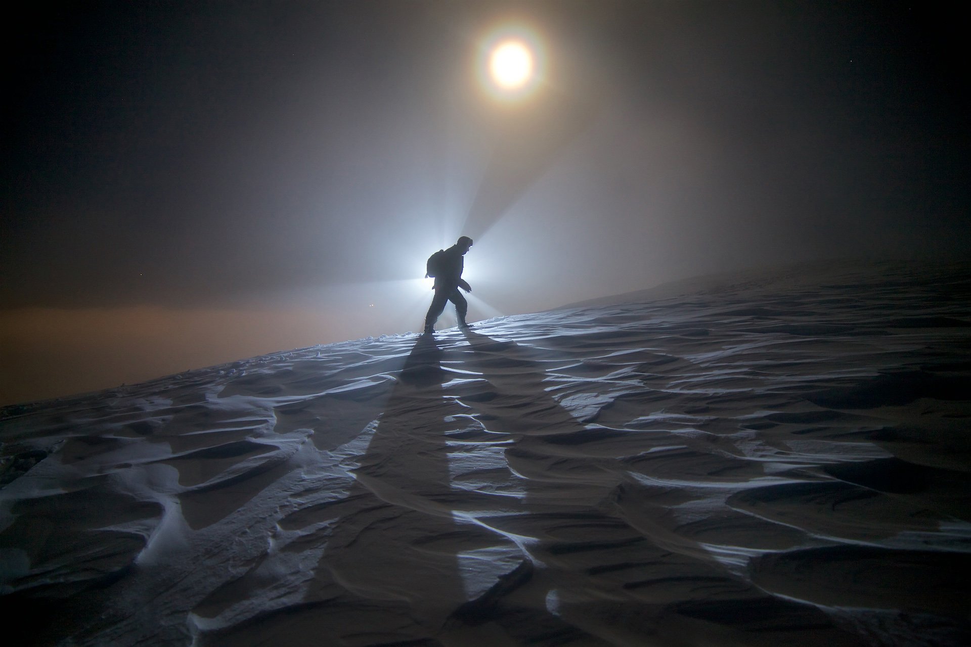ночь, лунное гало, север, путник, снег, горы, наст,, Никифоров Егор