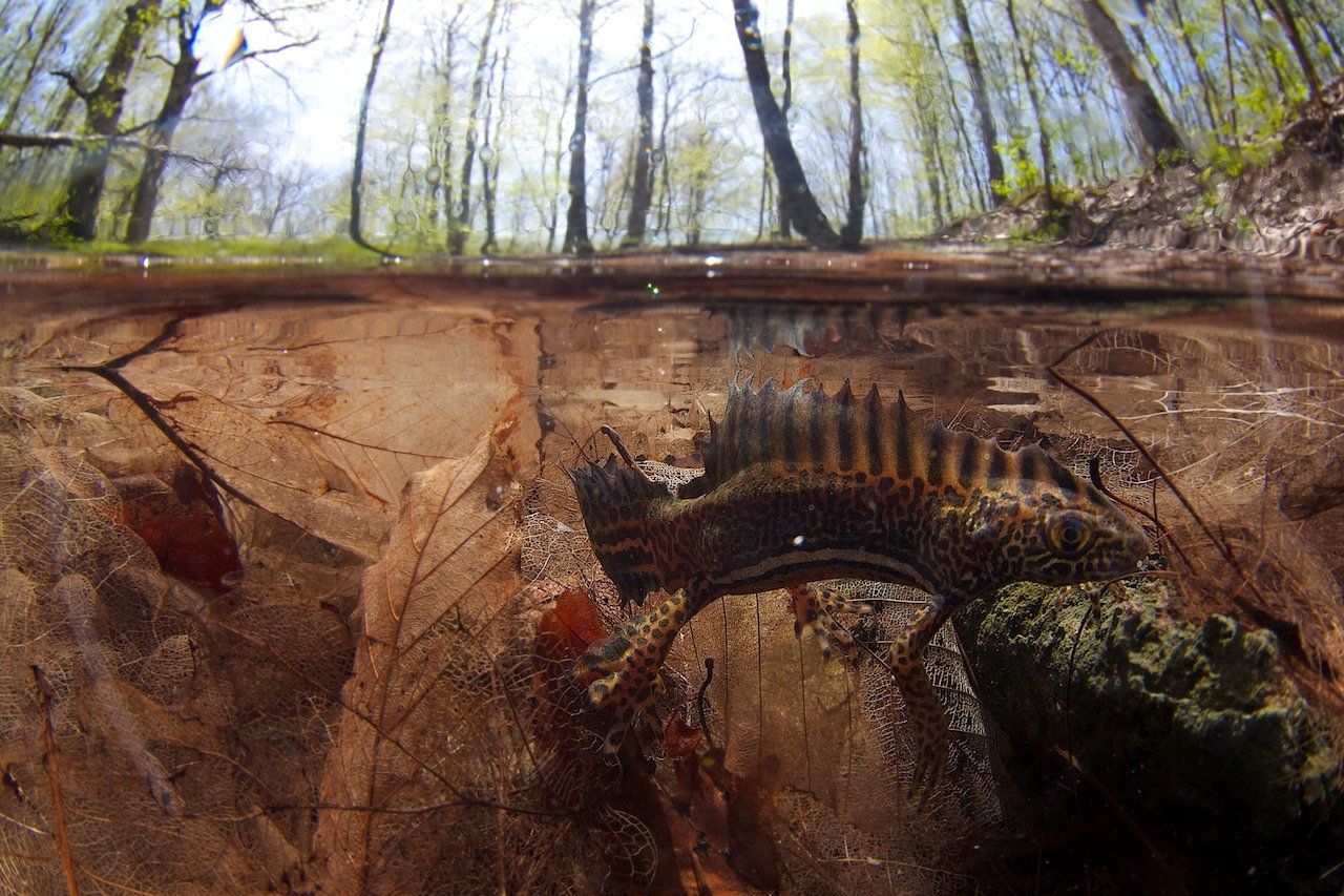весна, водоем, подводная съемка, пресмыкающееся, тритон, Никифоров Егор