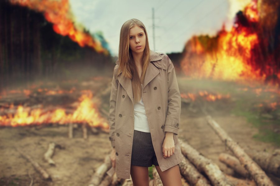 девушка, пожар, лес, горит, апокалипсис, лиза, елизавета, огонь, Никита Остроумов