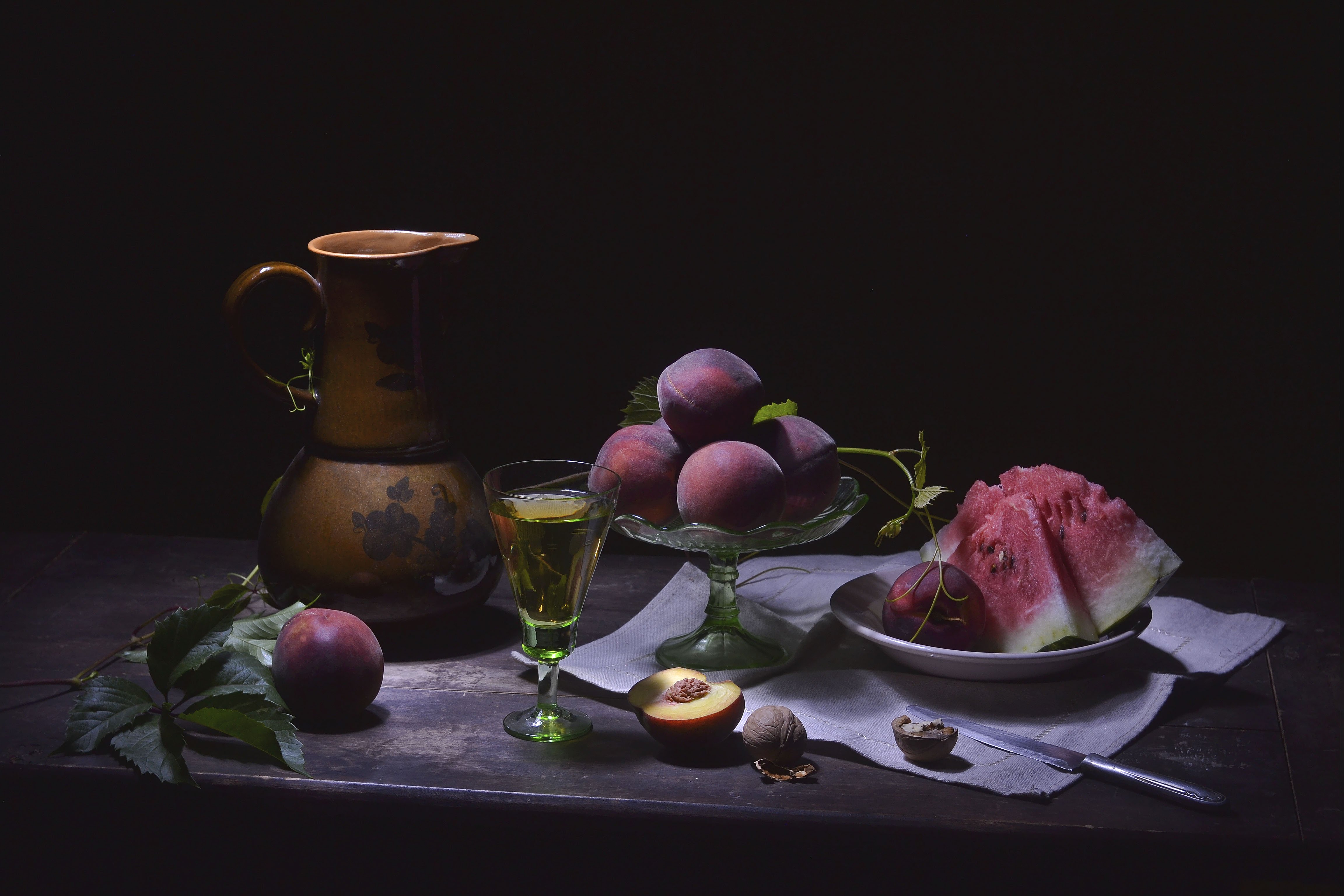 Арбуз, персики, кувшин, натюрморт, лето, июль., Оксана Евкодимова