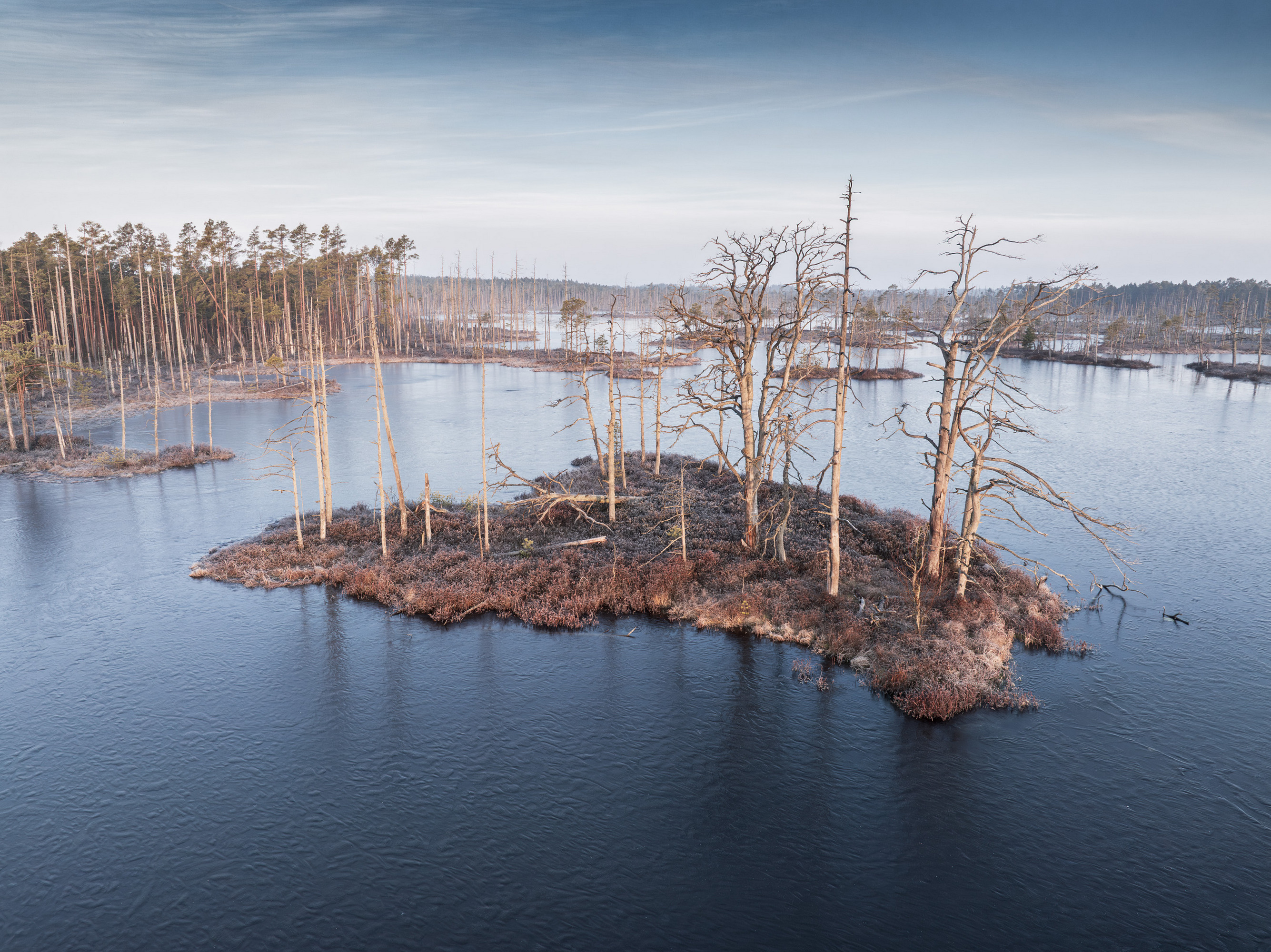 Вы передали холодное утро с точностью и спокойствием — вода, мёртвые деревья, туманная дымка — всё это создаёт ощущение тихой, почти задумчивой природы. Кадр сильный в своей простоте.