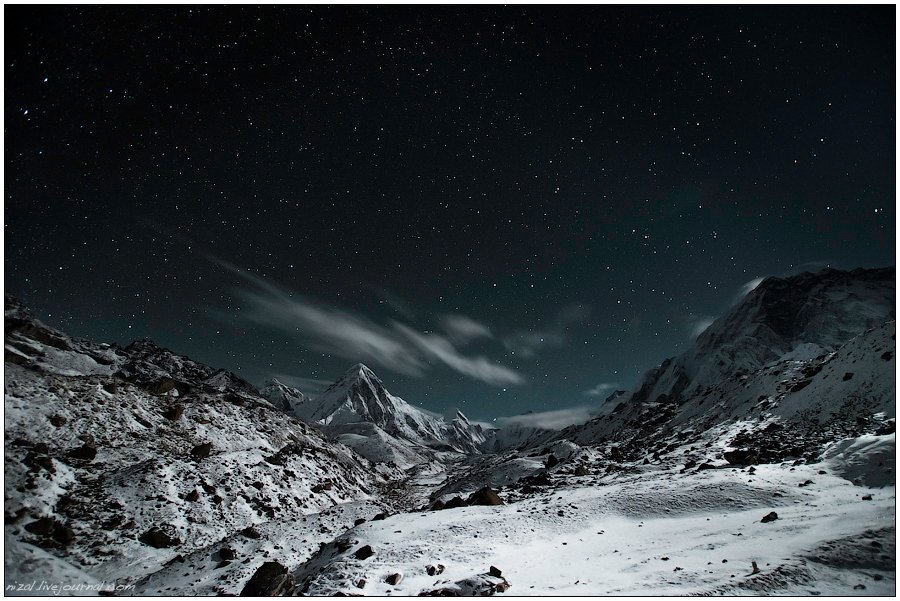 Эта фотография была сделана в деревне Лобуче на высоте около 5 тыс. метров. На следующий день нам предстояло идти как раз в эту сторону к г. Пумори и к базовому лагерю Эвереста.