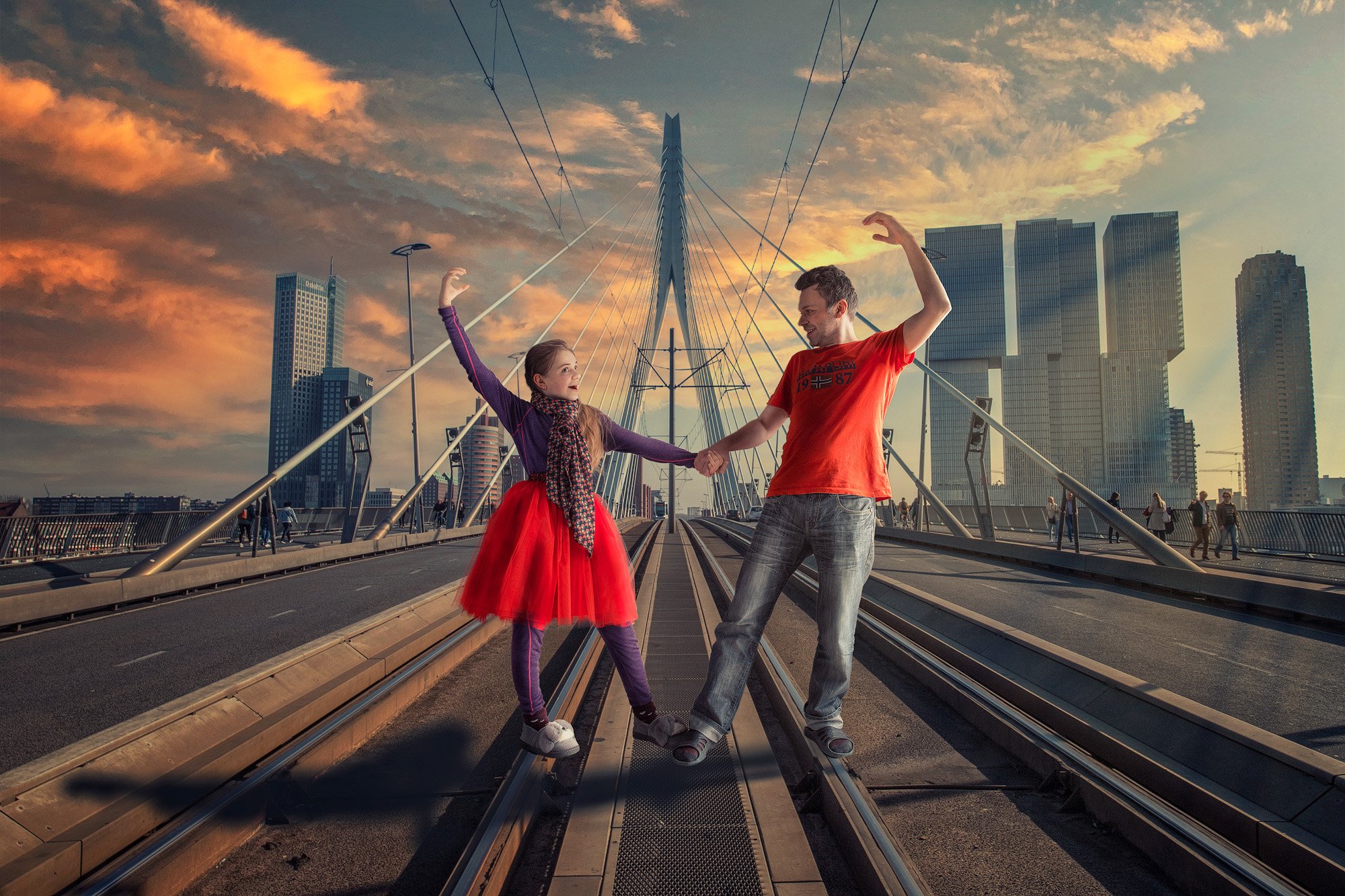 мост, танец, девочка, мужчина, роттердам, Николай Сизиков