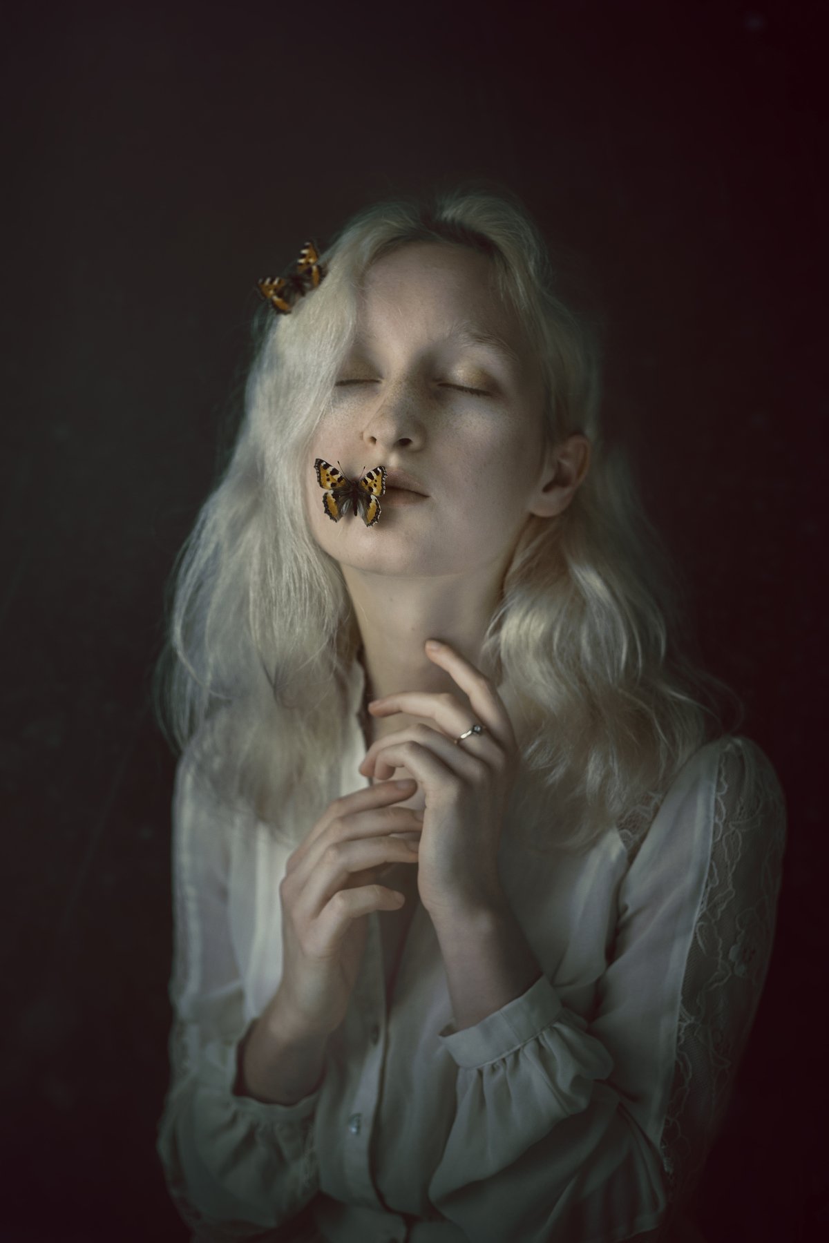 butterfly, model, girl, blonde, slavic, mood, melancholy, portrait, Izabela Nowakowska