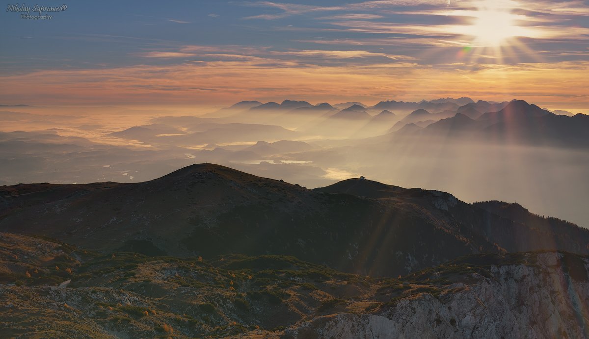 Эта фотография осеннего рассвета над долиной реки Драу в Южной Каринтии сделана с массива Филлахских Альп. На заднем плане хребет Караванских Альп, разделяющих Австрию и Словению и уходящие вдаль пики Юлианских Альп (Словения). Благодаря большому количеству озер в южной Австрии эти места богаты на туманы, а горный ландшафт и хорошая инфраструктура позволяют делать подобные пейзажи без сложных горных восхождений.