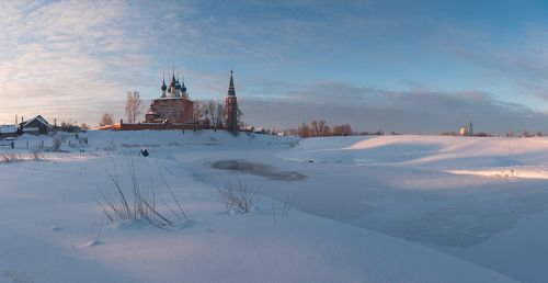 59Прощание с бабьим летом на реке Теза |  60"Зимнее утро с видом на Храм Рождества Богородицы через Тезу из Дунилово" |  53"Весеннее утро в Холуе. Вода отступает" |  54"Наедине с зимним рассветом в Дунилово" |