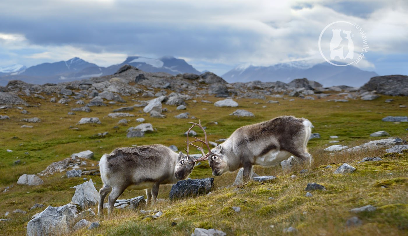 Красив северный пейзаж на островах архипелага Шпицберген. И особенно летом! Суровая природа отточила серую фактуру камней и скал и украсила угрюмый пейзаж многими оттенками зеленого при помощи мхов, лишайников и трав. Климат там такой, что обычным деревьям уж никак там не выжить - лишь иногда встречаются карликовые березы и полярные ивы. Короткое северное лето заканчивается еще в августе, а уже в сентябре ландшафт укрывается белым снегом. Из наземных млекопитающих здесь обитает белый медведь, песец и северный олень. Шпицбергенский северный олень - самый маленький из видов северных оленей. Дикую природу норвеги любят и охраняют. Совершенно дикие олени подпускают людей на расстояние в десяток метров. Красота, можно весь день просидеть смотря на то, как они играют!