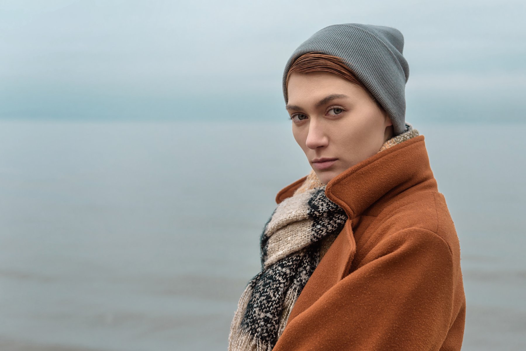 девушка, модель, взгляд, губы, осень, берег, море, небо, портрет,нежная, строгая, привлекательная, Анна Дегтярёва