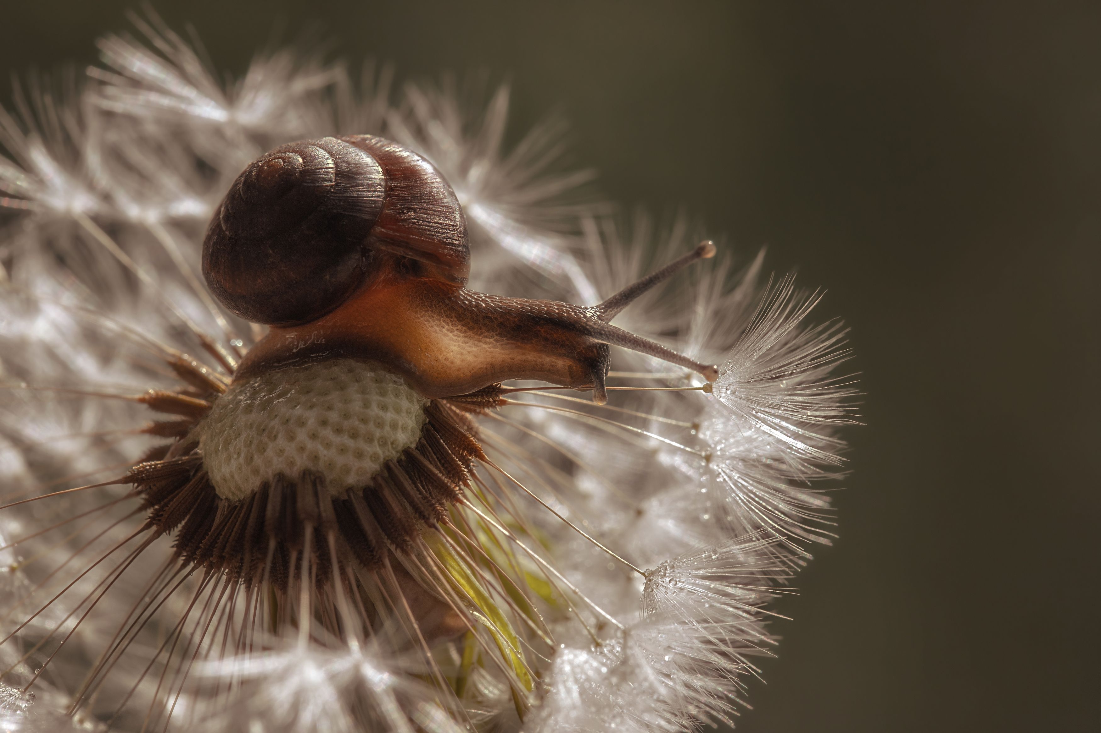 макро, улитка, одуванчик, природа, Мария Обидина