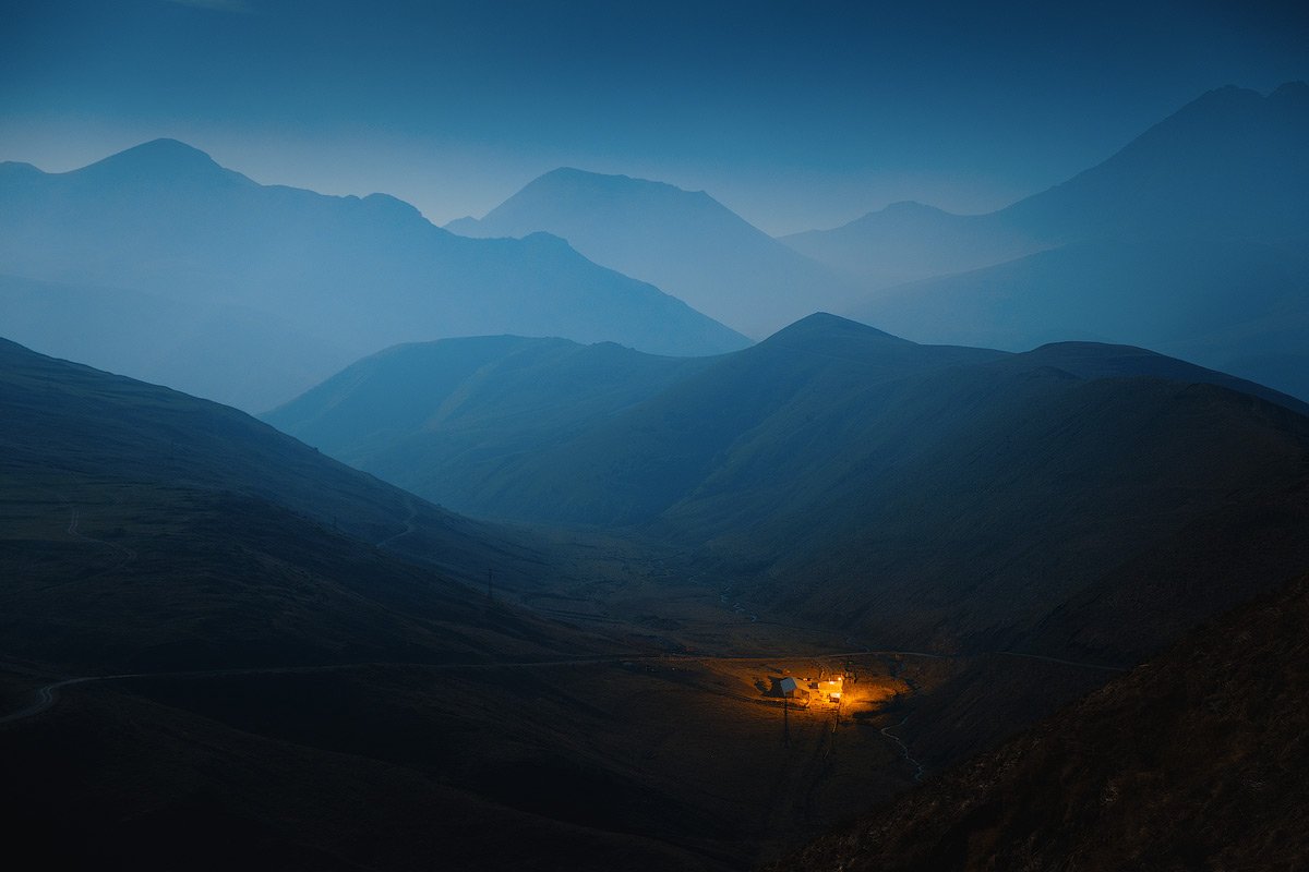 россия, кавказ, северная осетия, дигория, ущелье, хребет, река, сумерки, ночь, дом, горы, пейзаж, природа, осень, Оборотов Алексей
