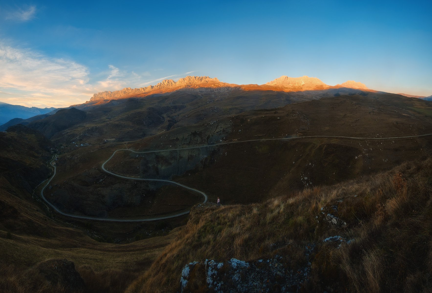 россия, кавказ, северная осетия, дигория, ущелье, хребет, река, сумерки, закат, дорога, горы, пейзаж, природа, осень, Оборотов Алексей